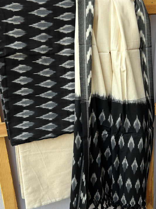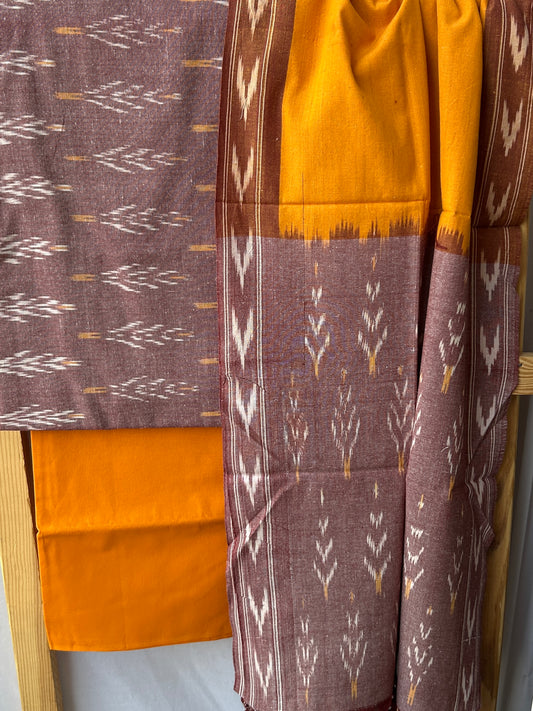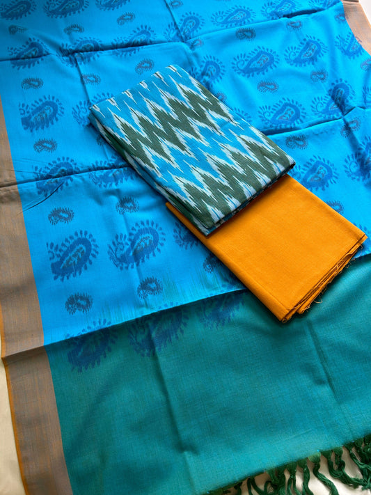 Hand BlockPrint Cotton Dress Material with Lehariya Chiffon Dupatta *