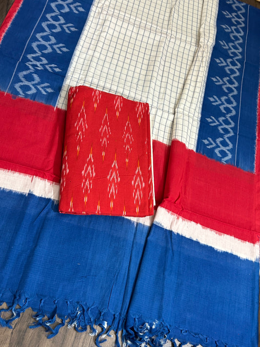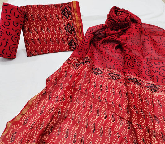 Hand BlockPrint Cotton Dress Material with Kota Silk Dupatta