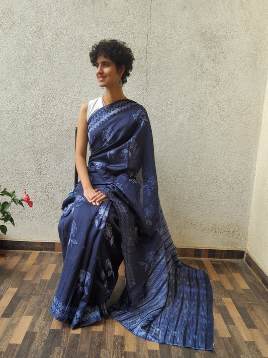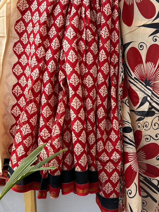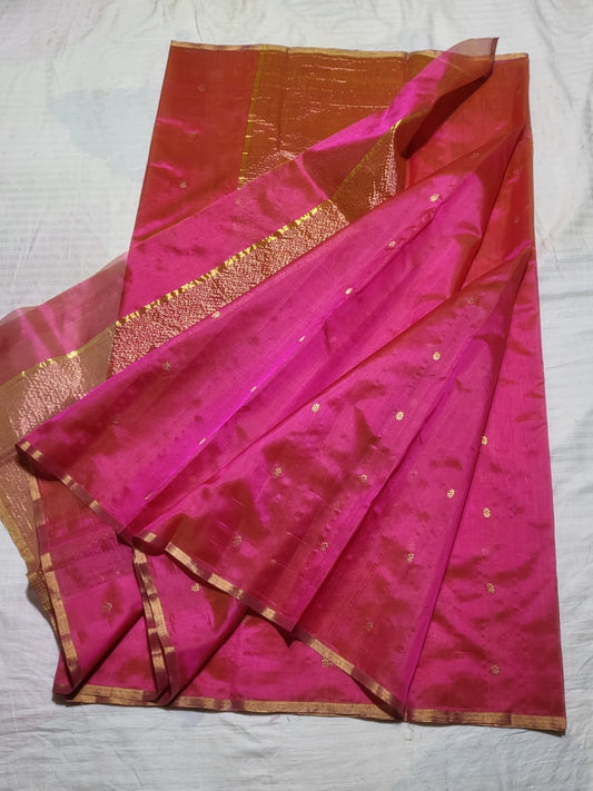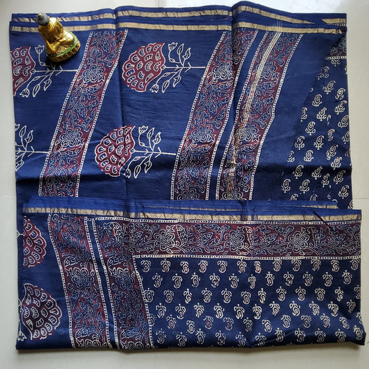 Hand BlockPrint Chanderi Silk Saree with Blouse