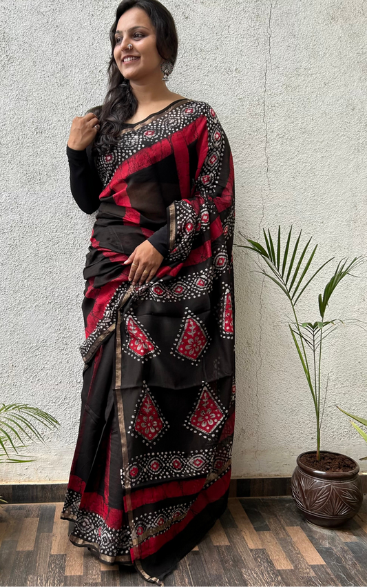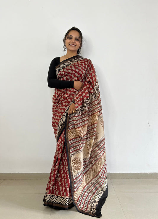 Hand BlockPrint Chanderi Silk Cotton Saree