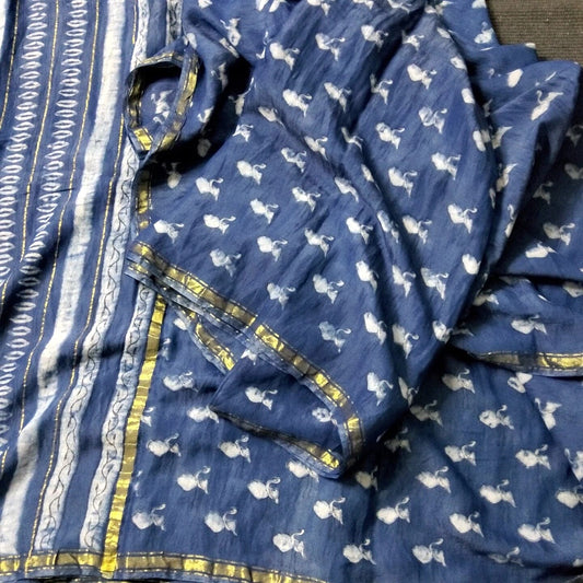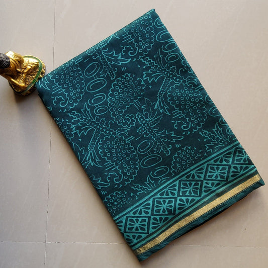Akola Hand BlockPrint Chanderi Silk Cotton Saree with Zari Border