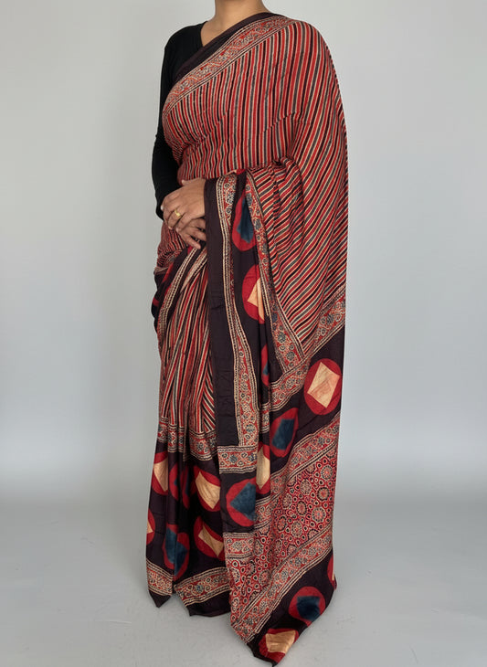 Deep Red Sambalpuri Pata Silk saree with Blouse