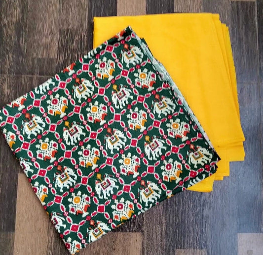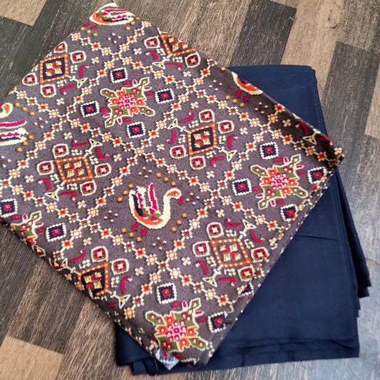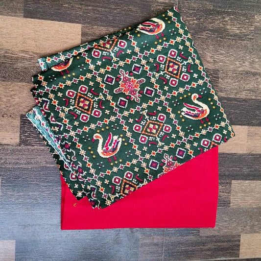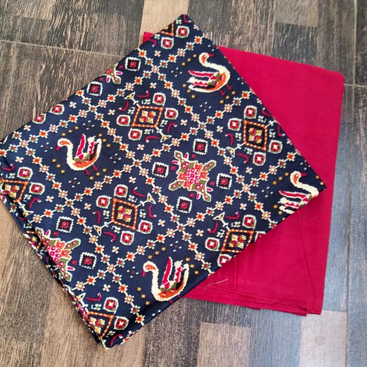 Blue Red PATOLA Print Satin Cotton Top Bottom Set