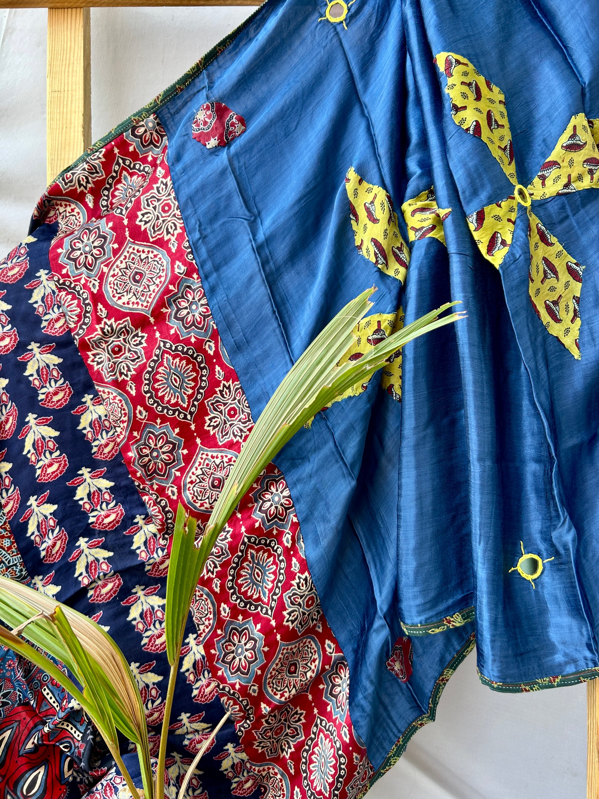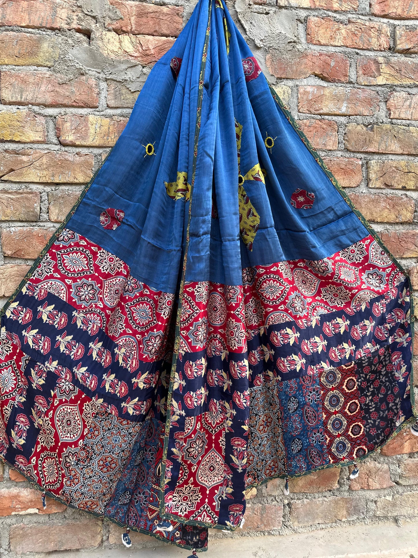 Ajrakh Patch-Work Modal Silk Dupatta with Mirror Work