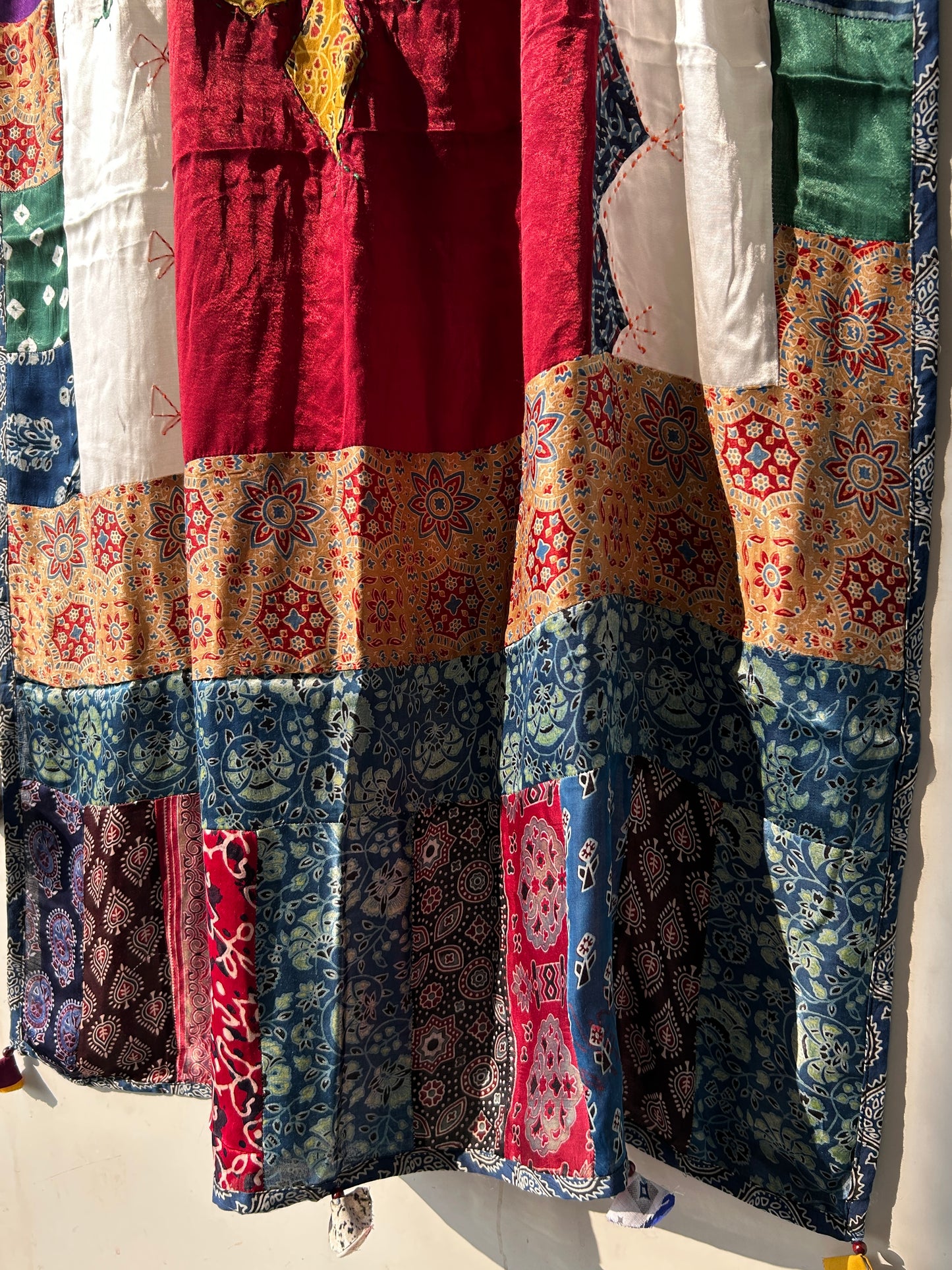Ajrakh Patch Work Modal Silk Dupatta with Mirror Work
