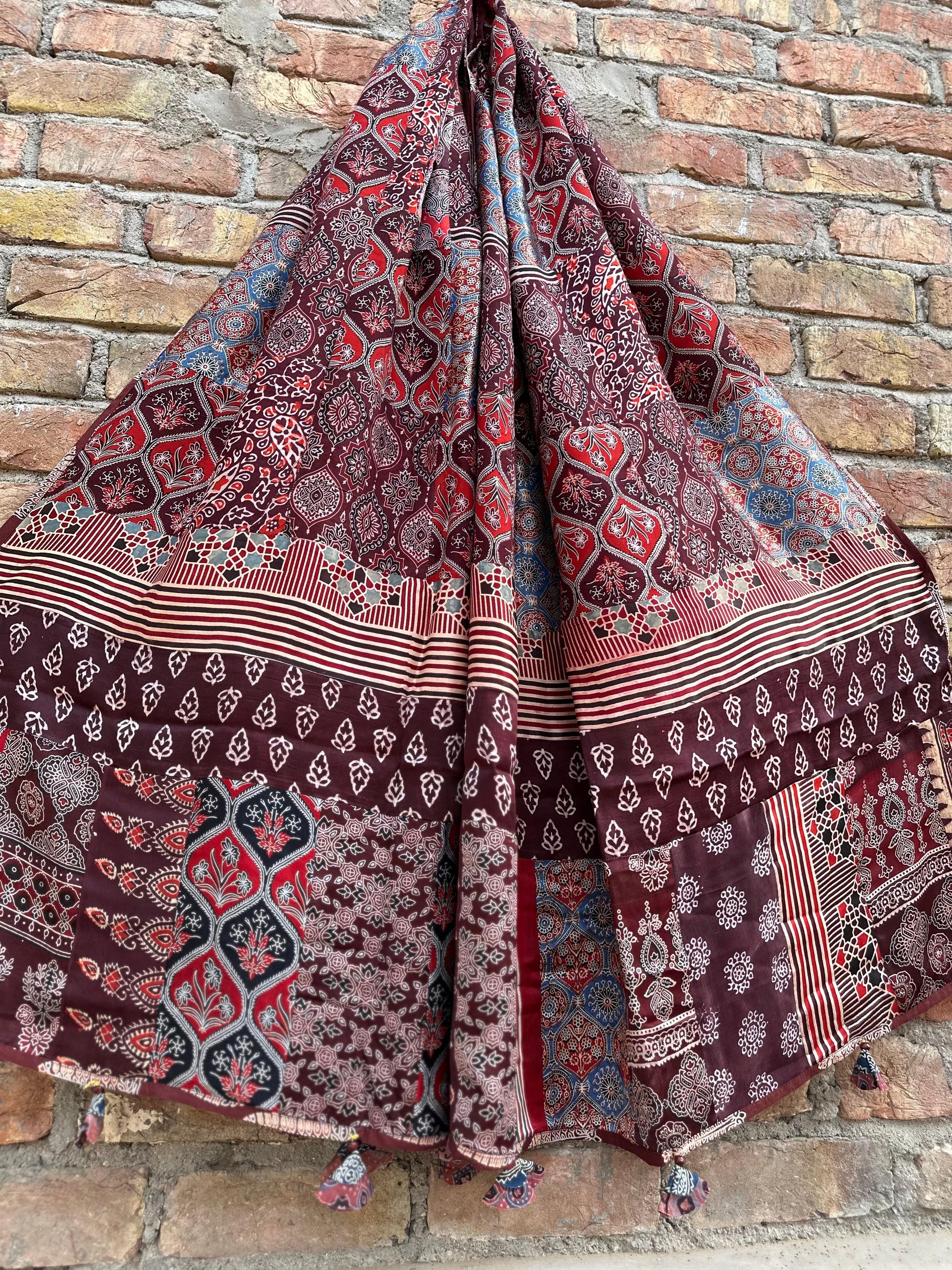 Ajrakh Patch Work Modal Silk Dupatta