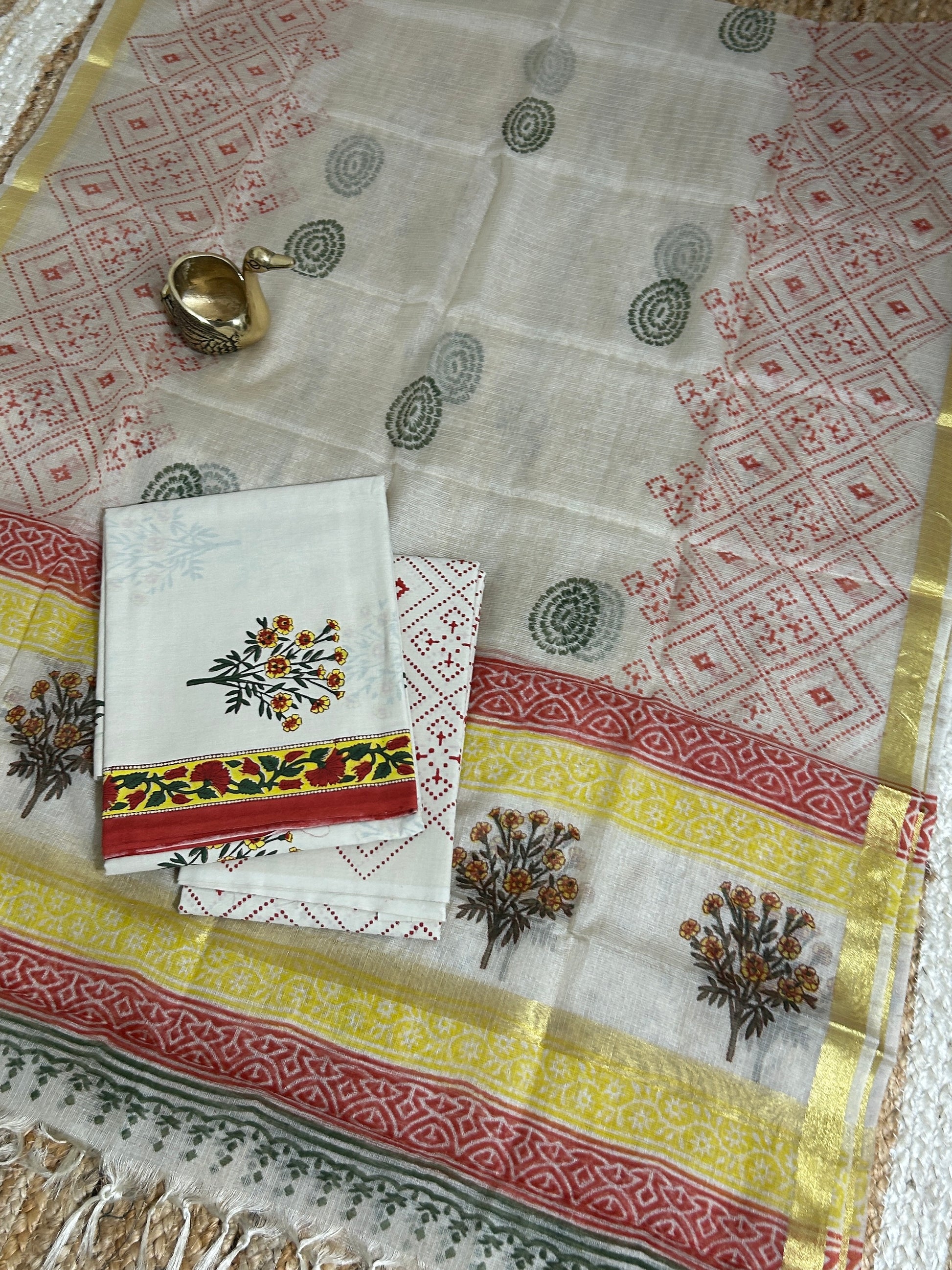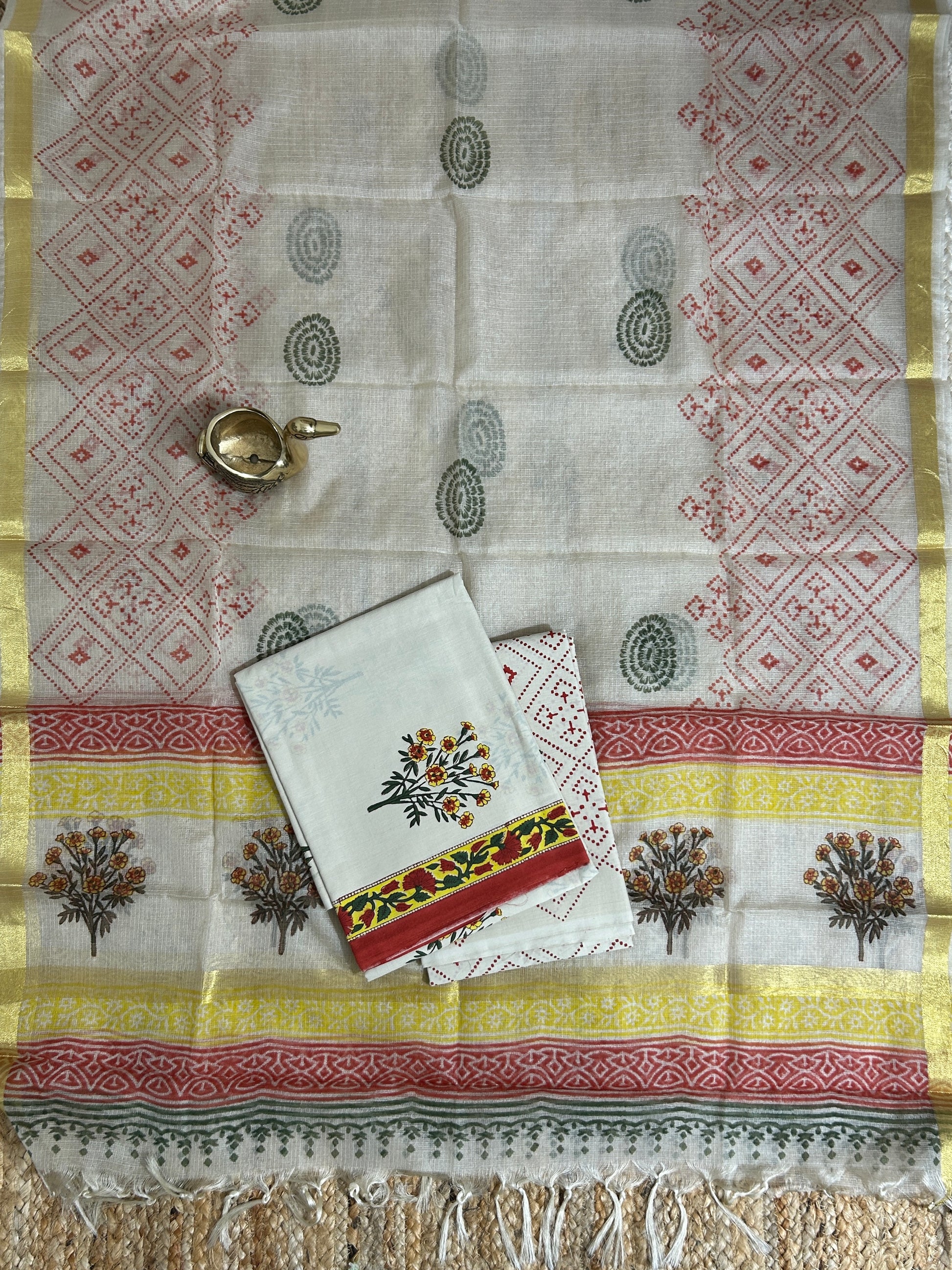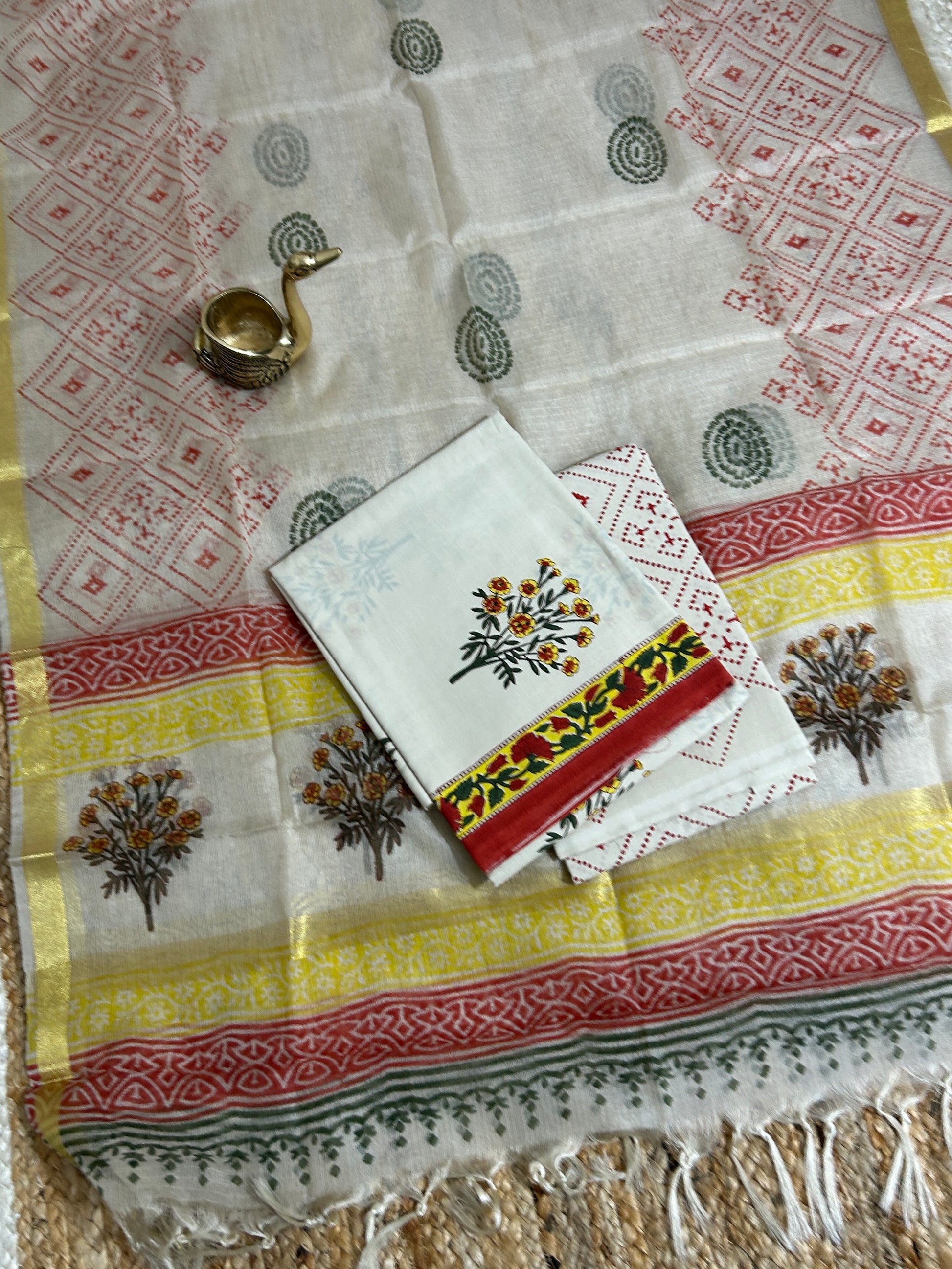 Hand Block Print Cotton Dress Material with Kota Silk Dupatta *