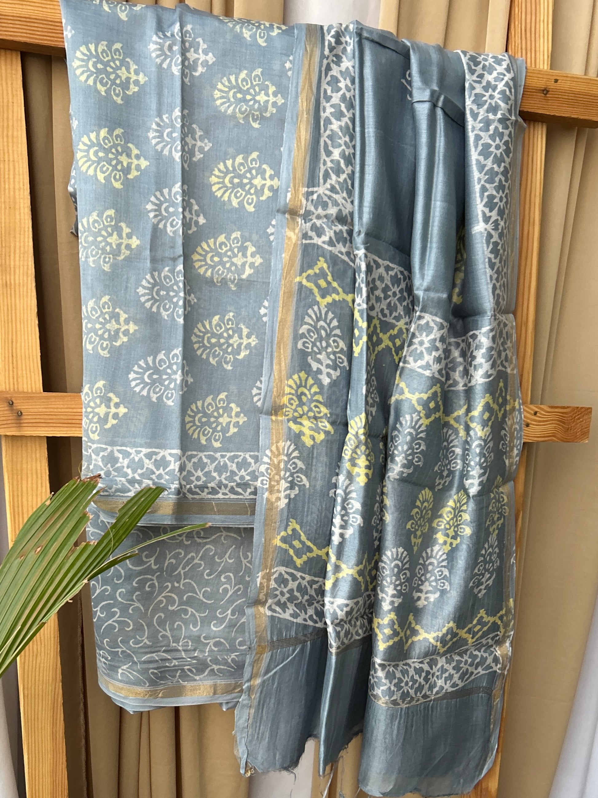 Chanderi Silk Cotton Hand BlockPrint Dress Material