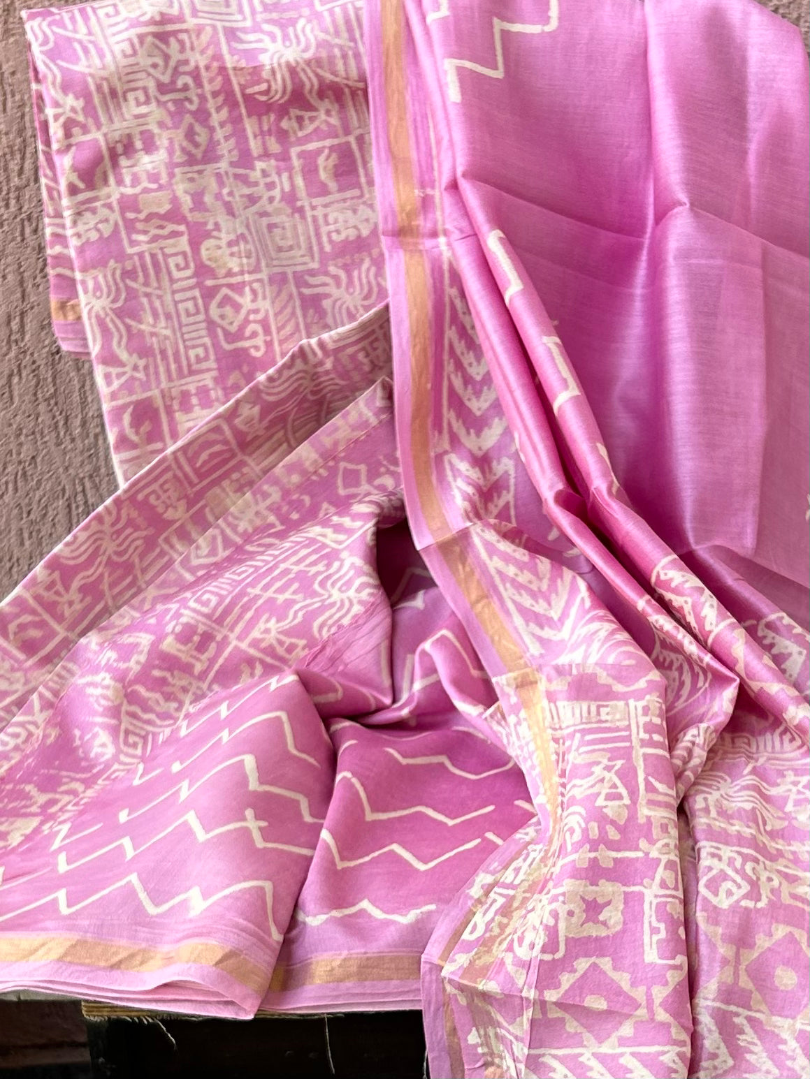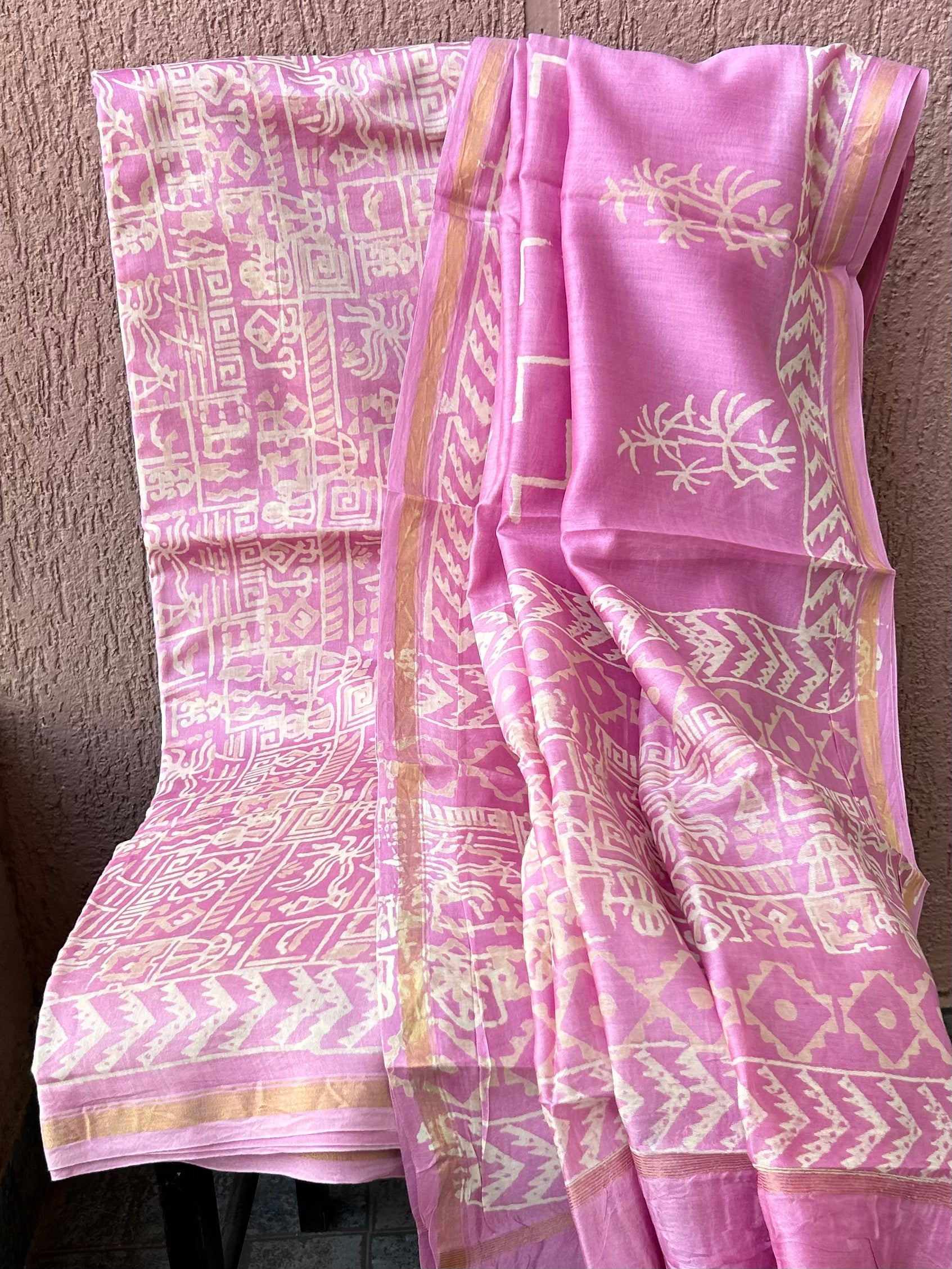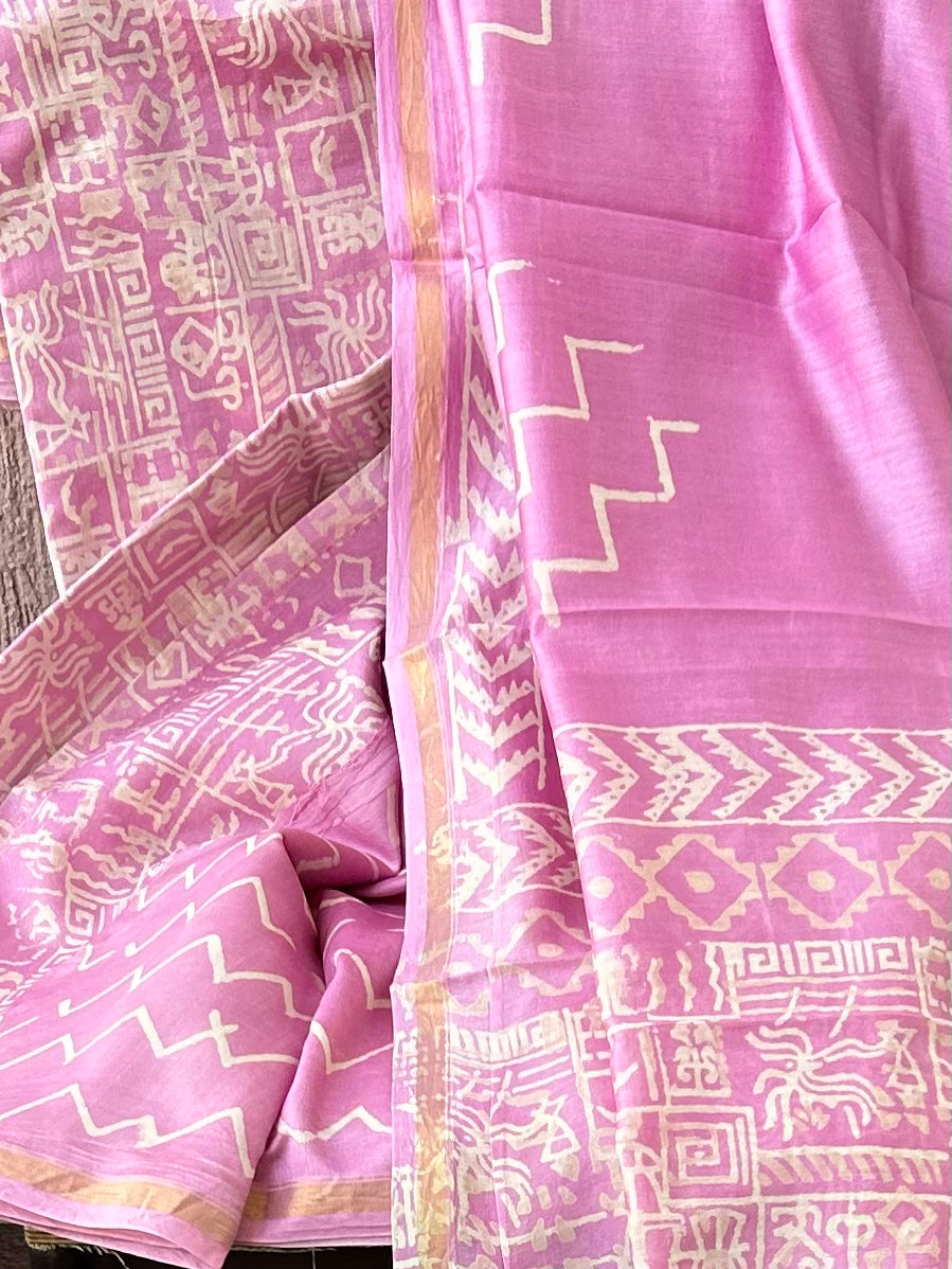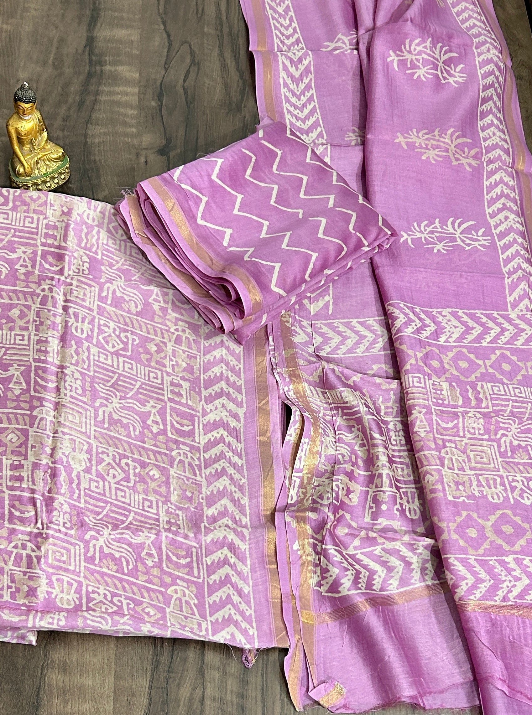 Chanderi Pure Silk Cotton Hand BlockPrint Dress Material