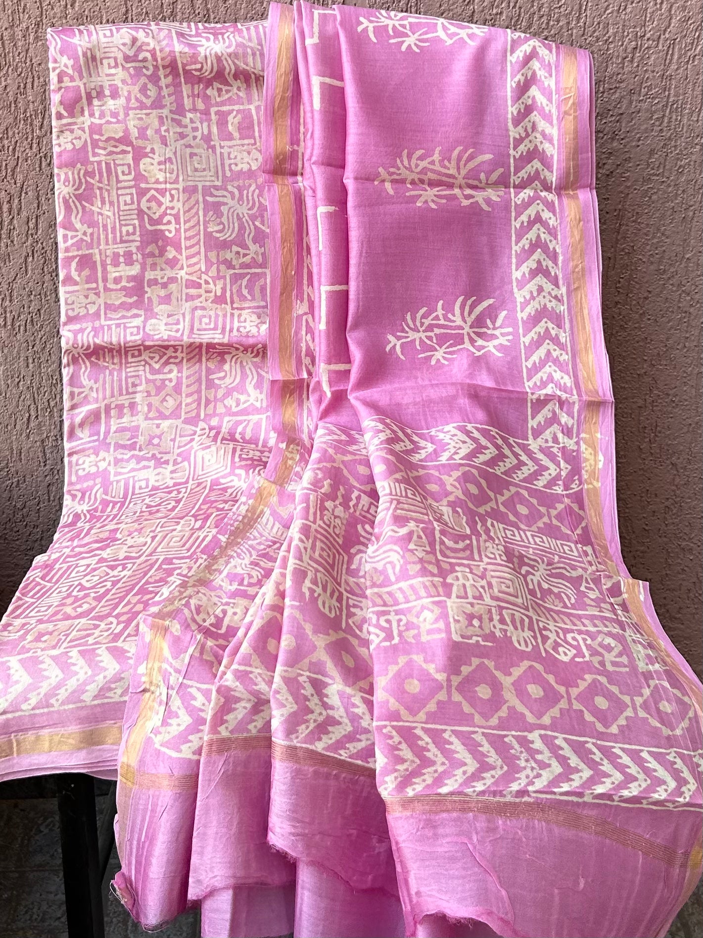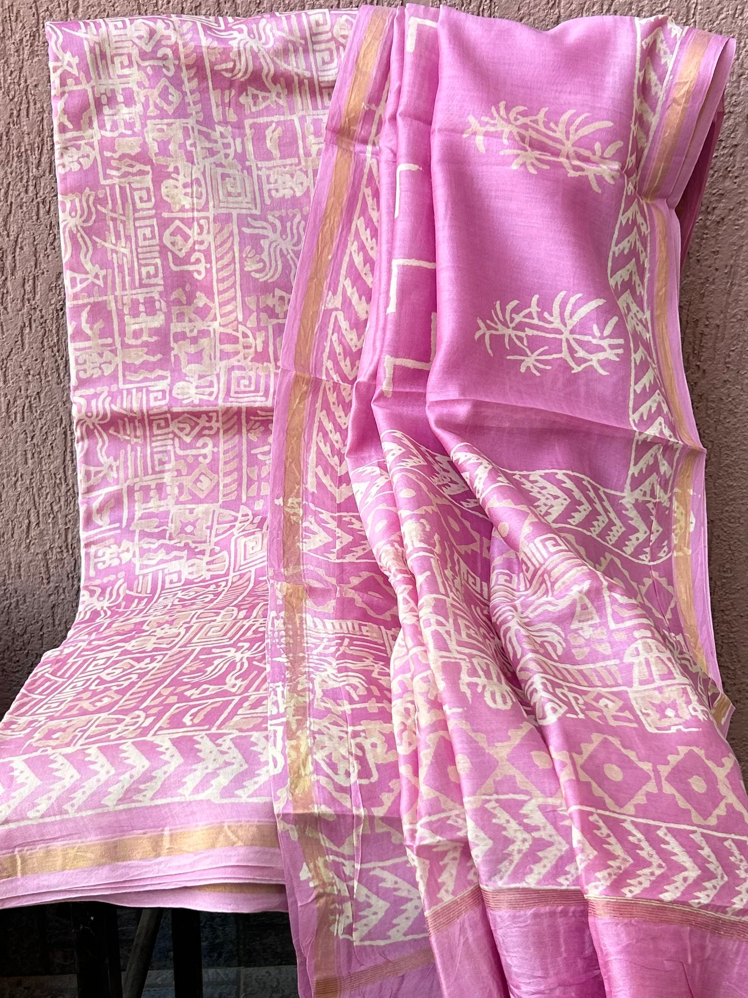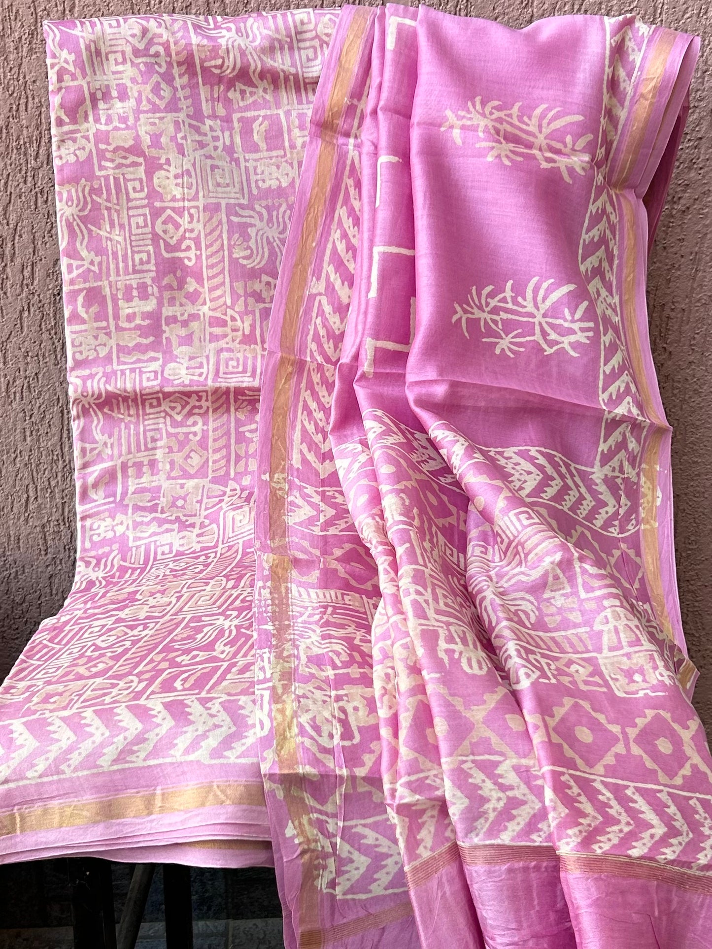 Chanderi Pure Silk Cotton Hand BlockPrint Dress Material