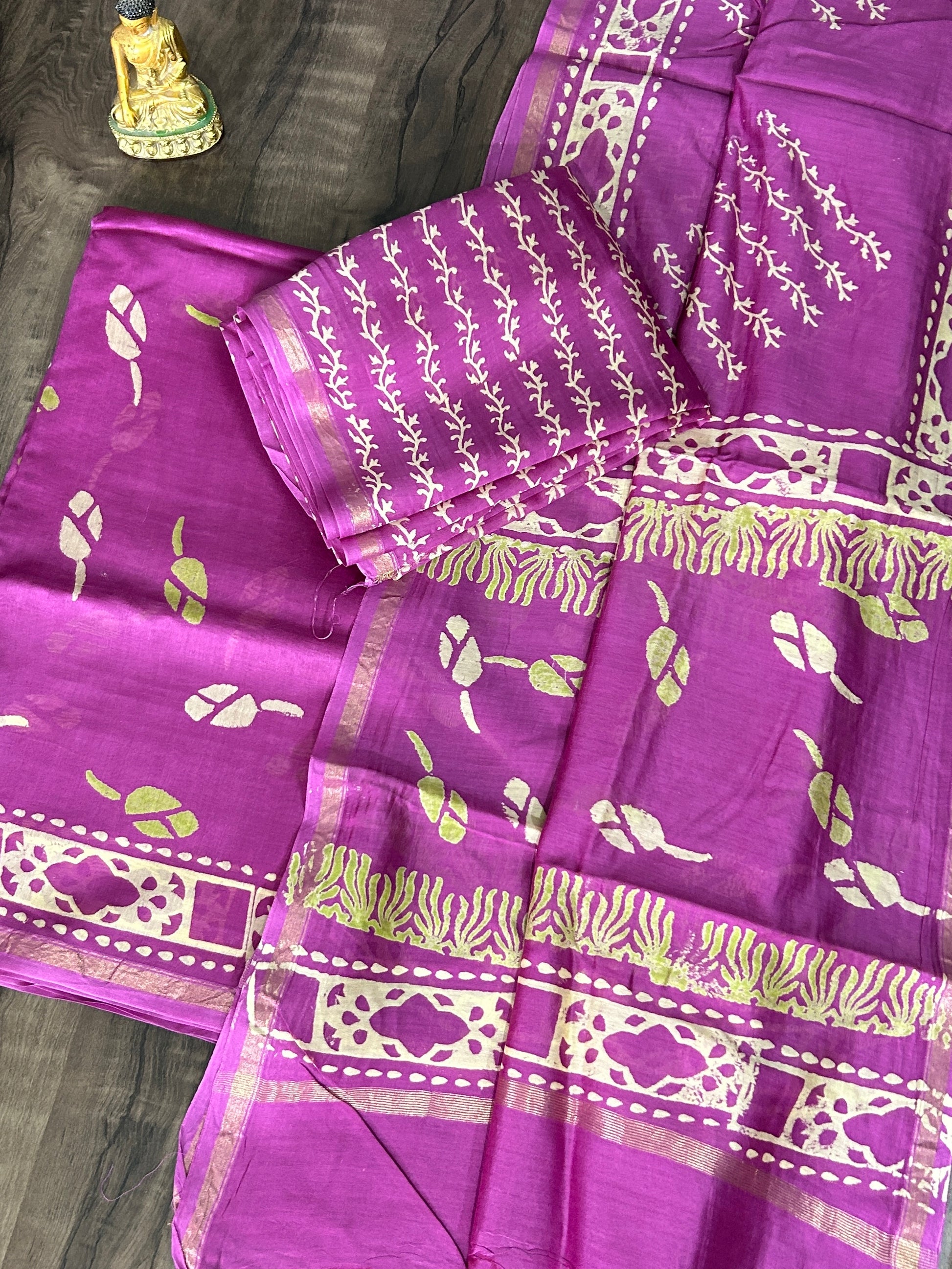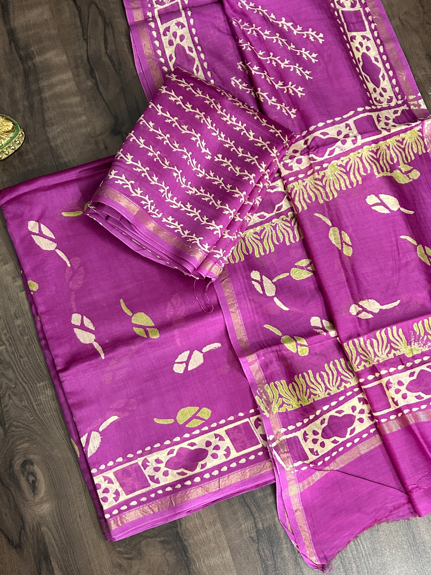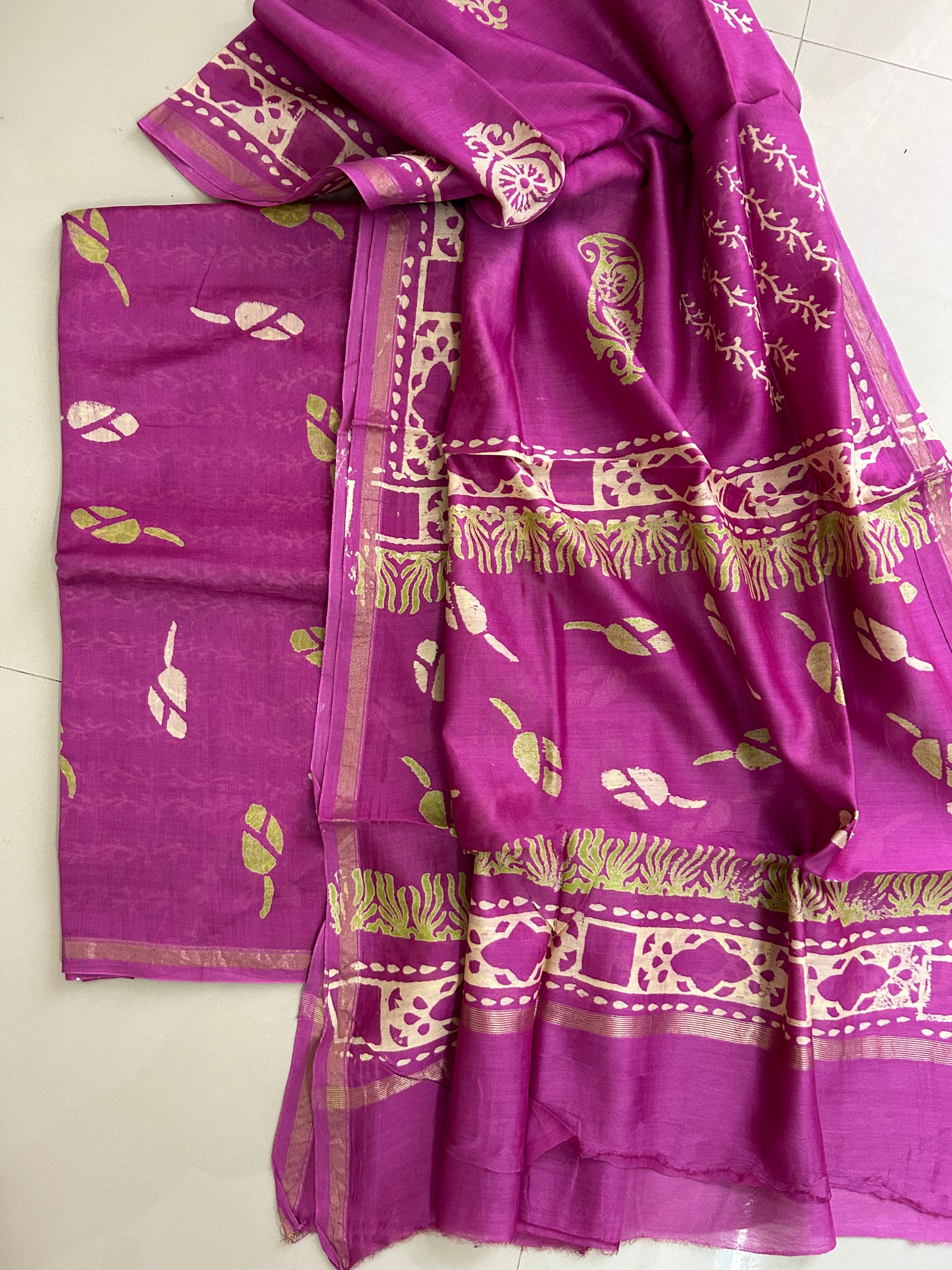 Chanderi 4 ply Pure Silk Cotton Hand BlockPrint Dress Material