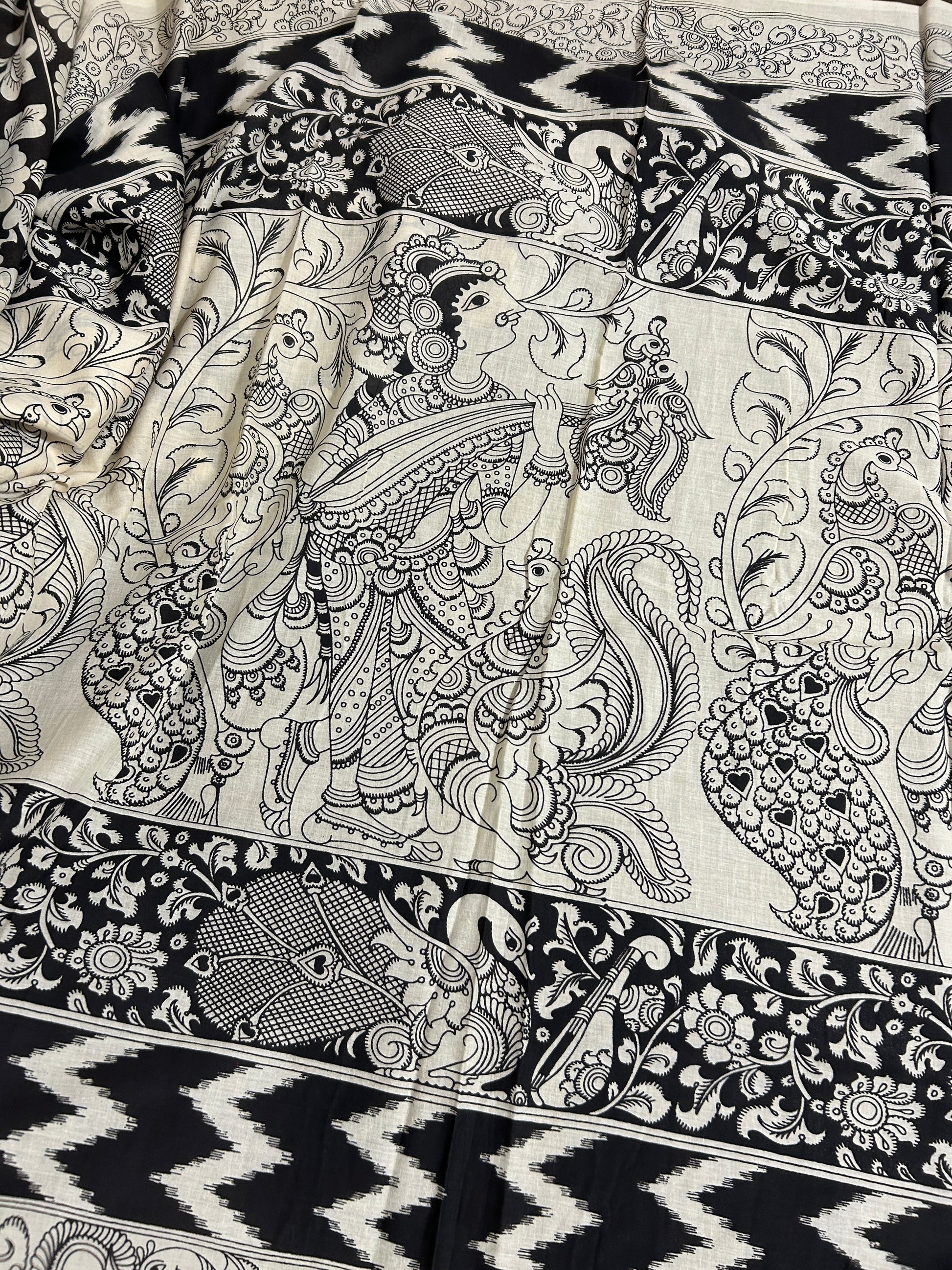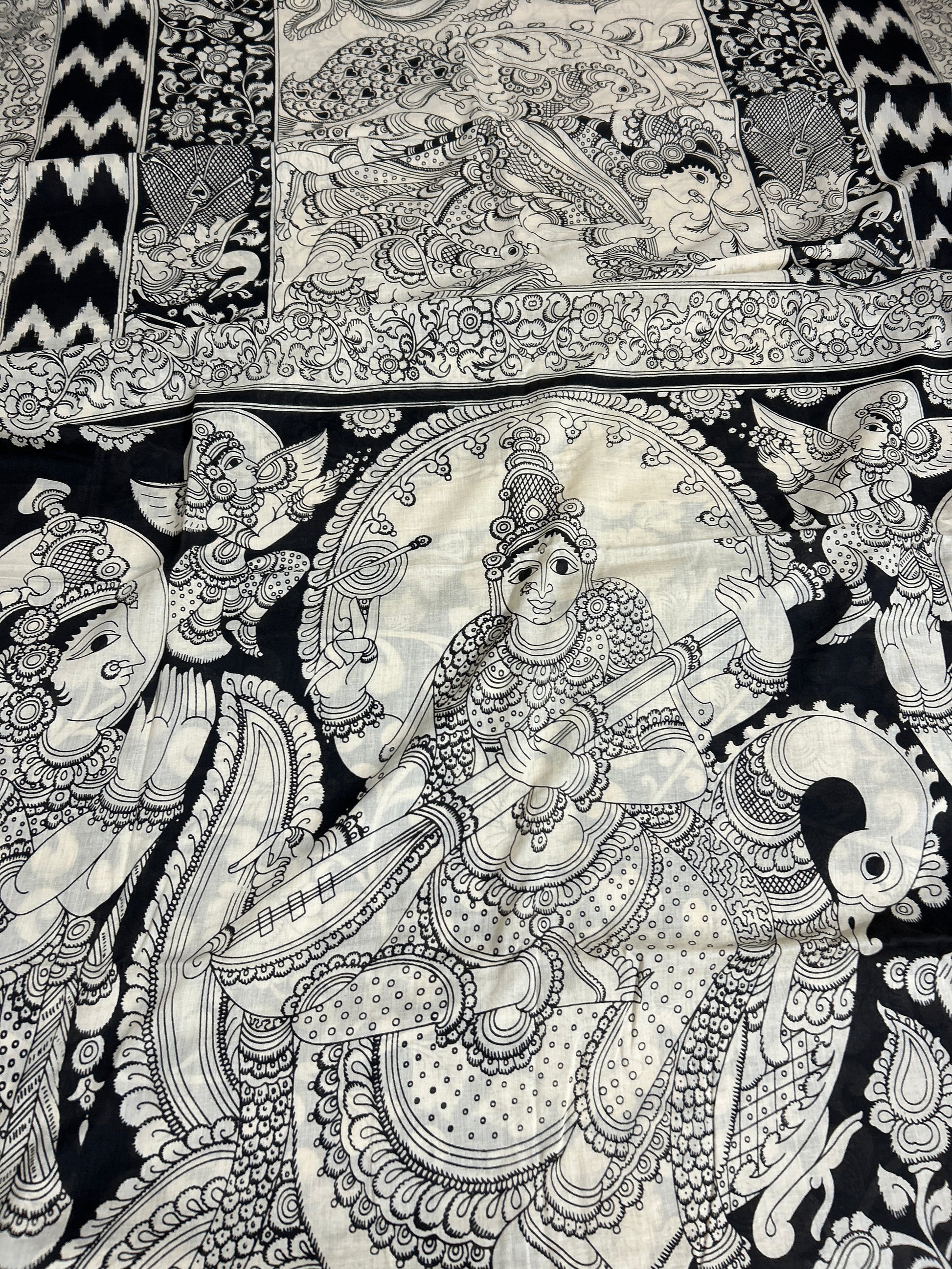 Kalamkari Hand Painted Malmal Cotton Saree with Blouse