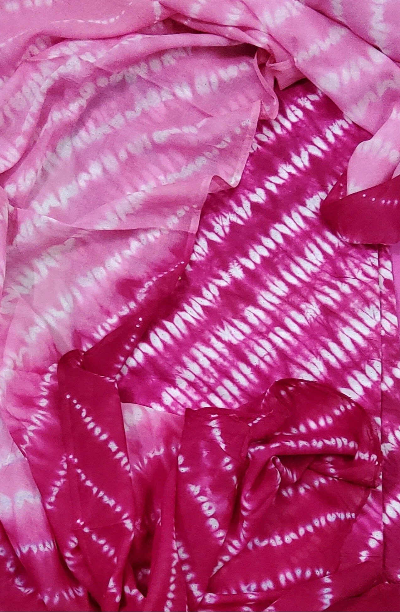 Tie and Dye Cotton Dress Material with Cotton Dupatta