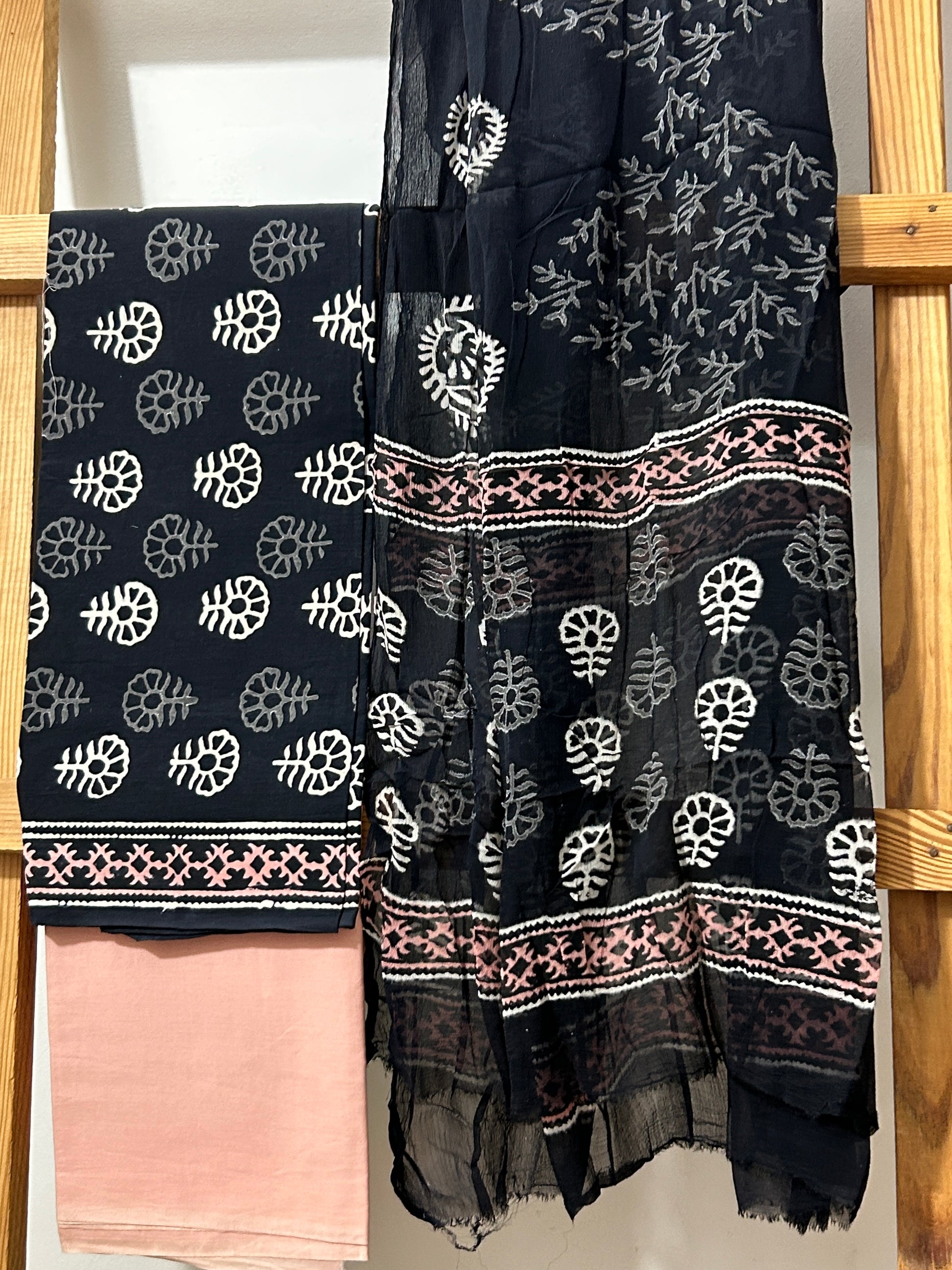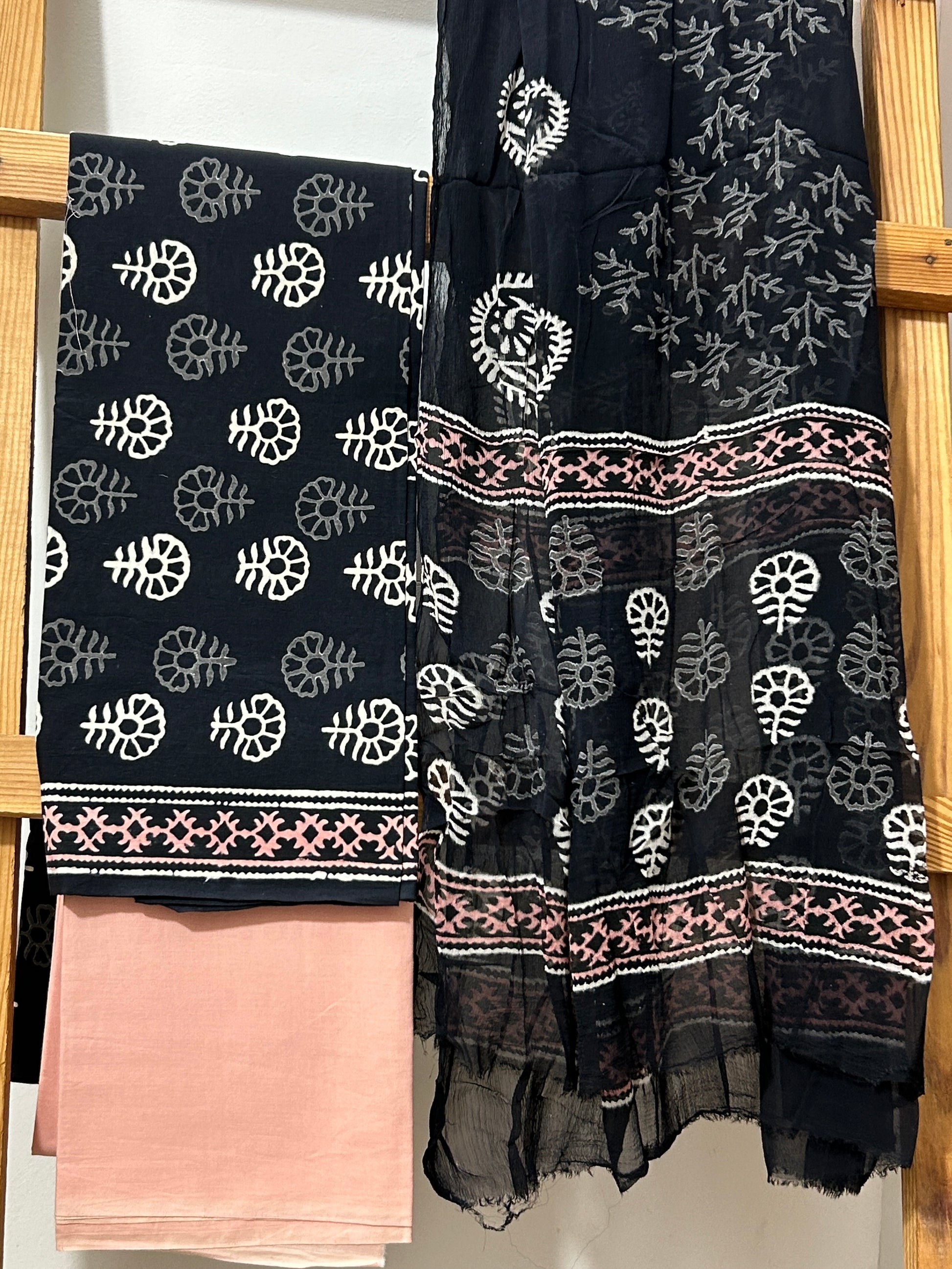 Cotton BlockPrint Dress Material with Chiffon Dupatta