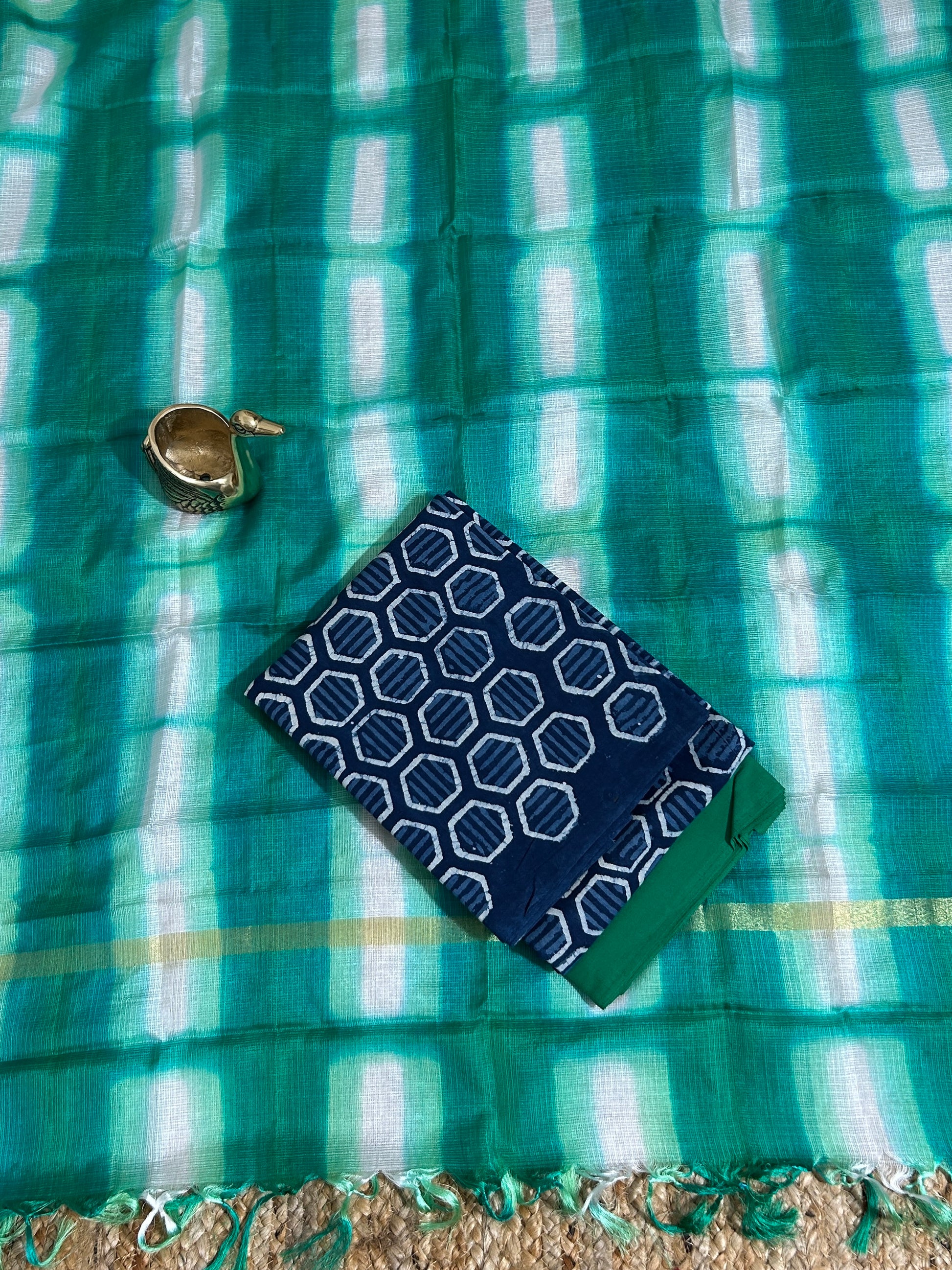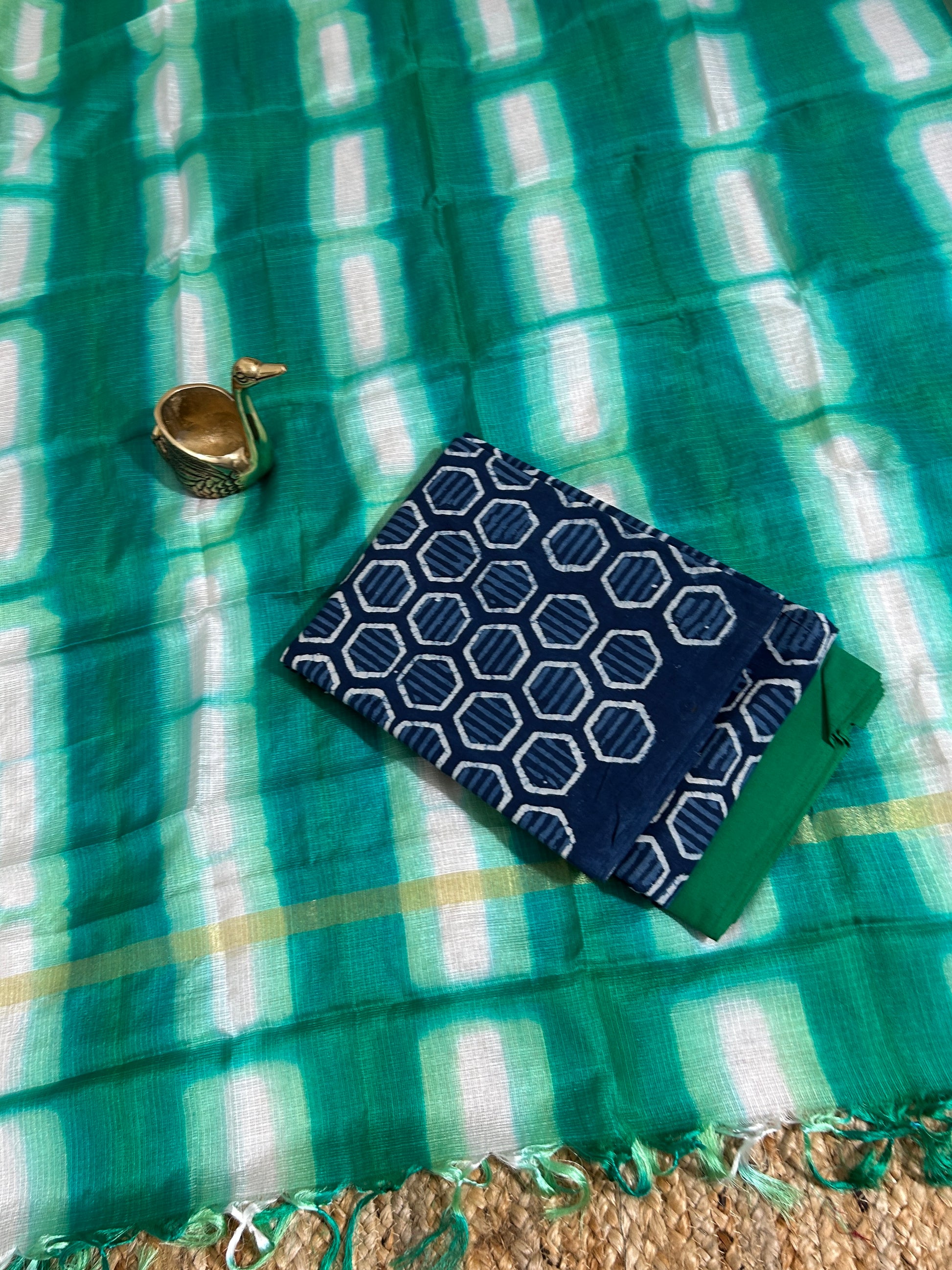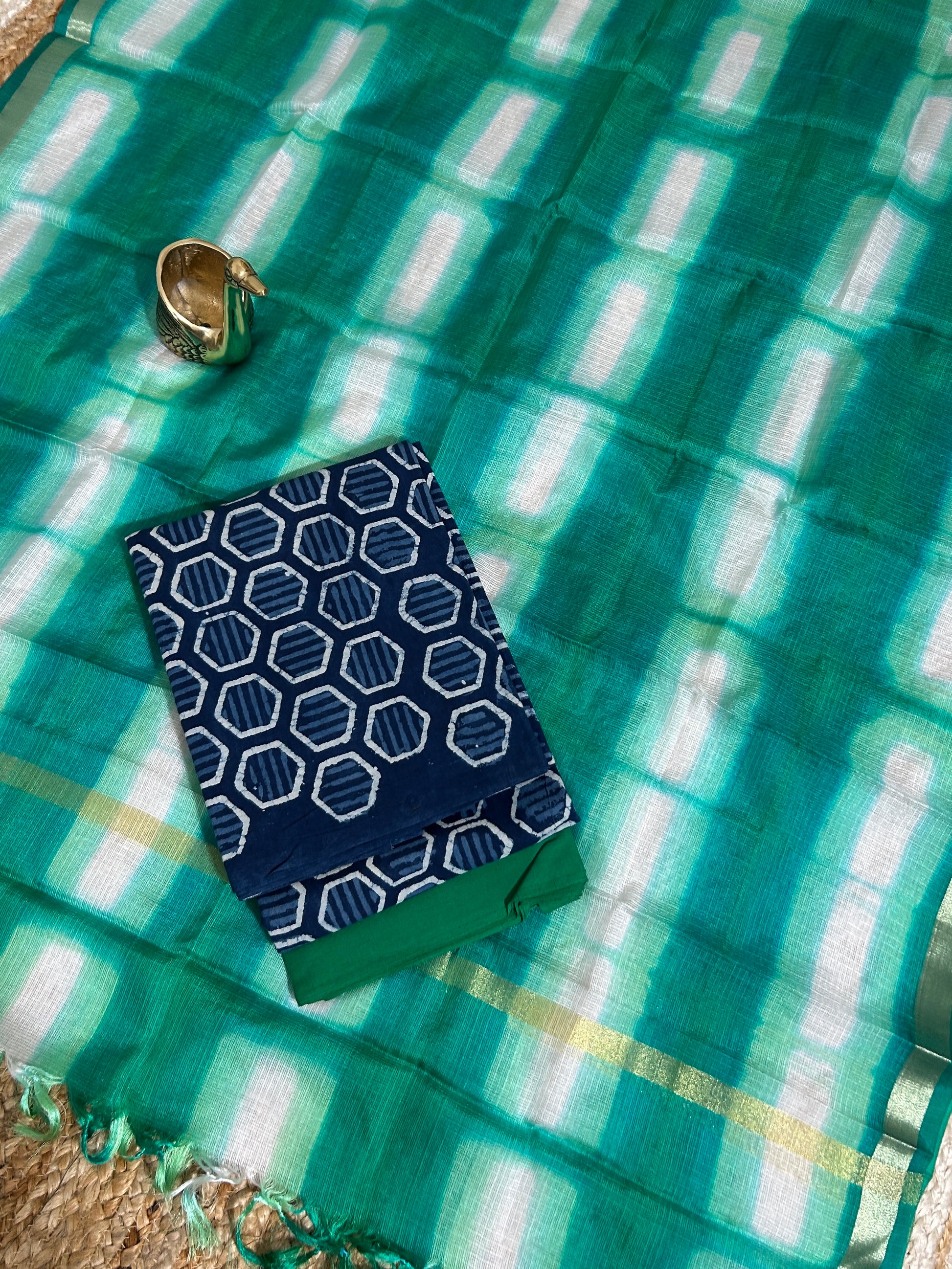 Hand BlockPrint Cotton Dress Material with Kota Silk Dupatta