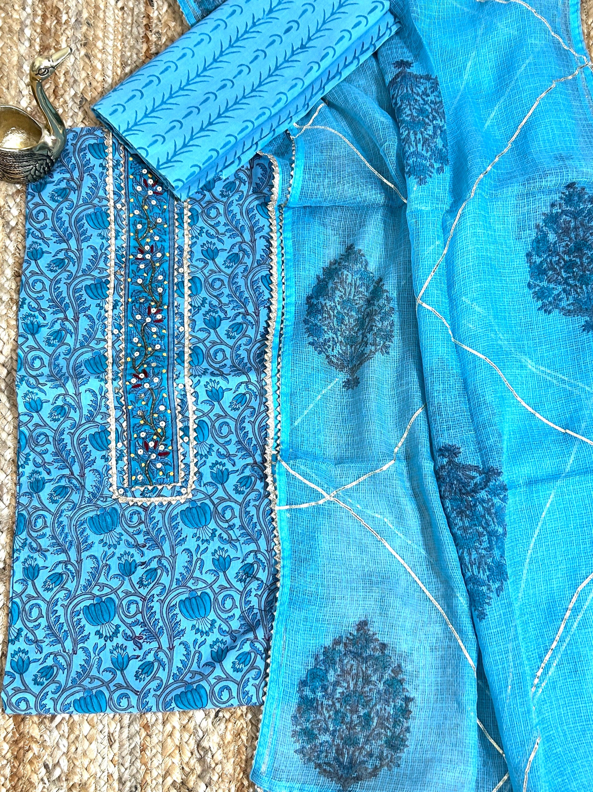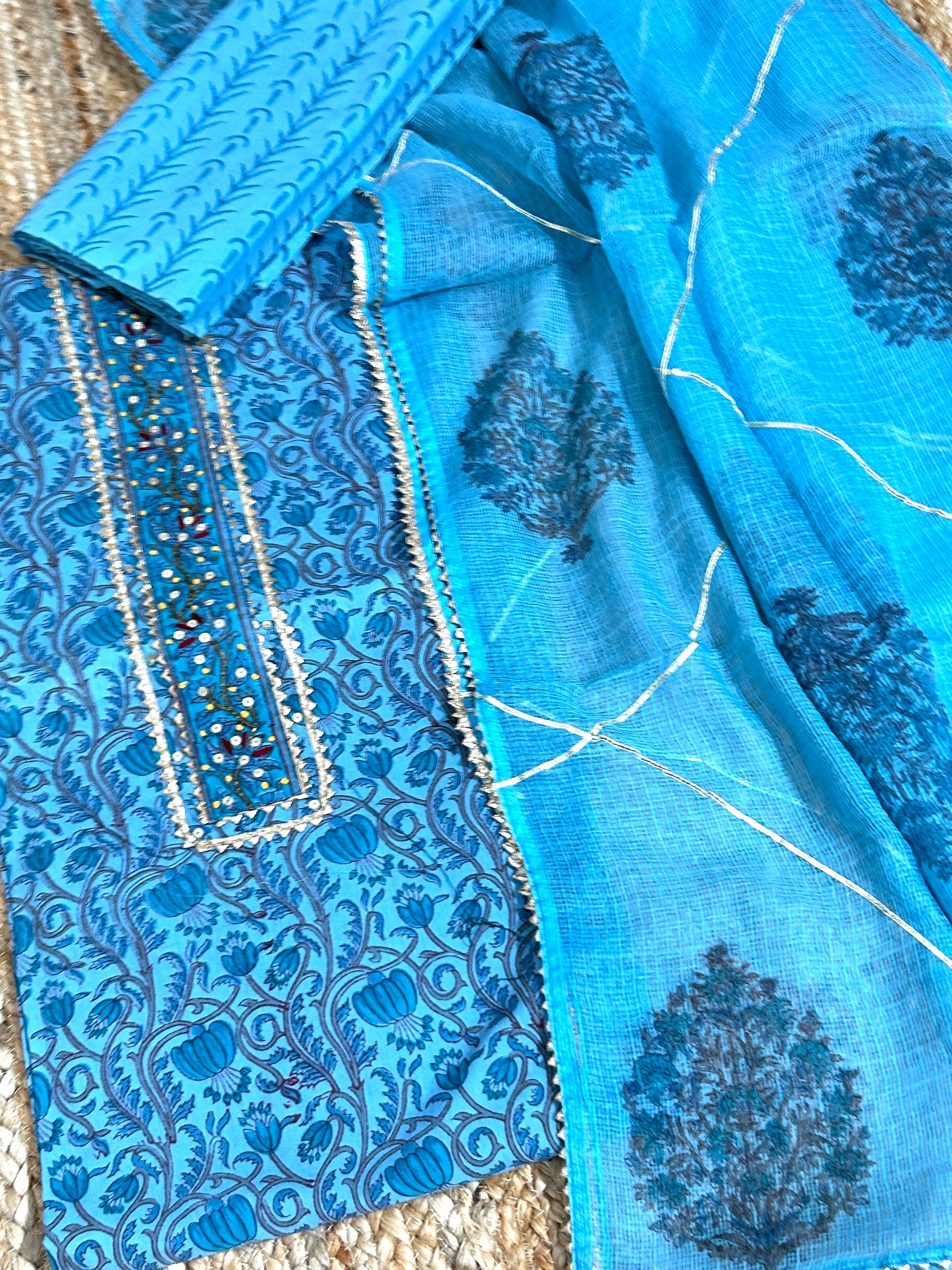 Block Print Cotton Dress Material with Kota Doriya Dupatta