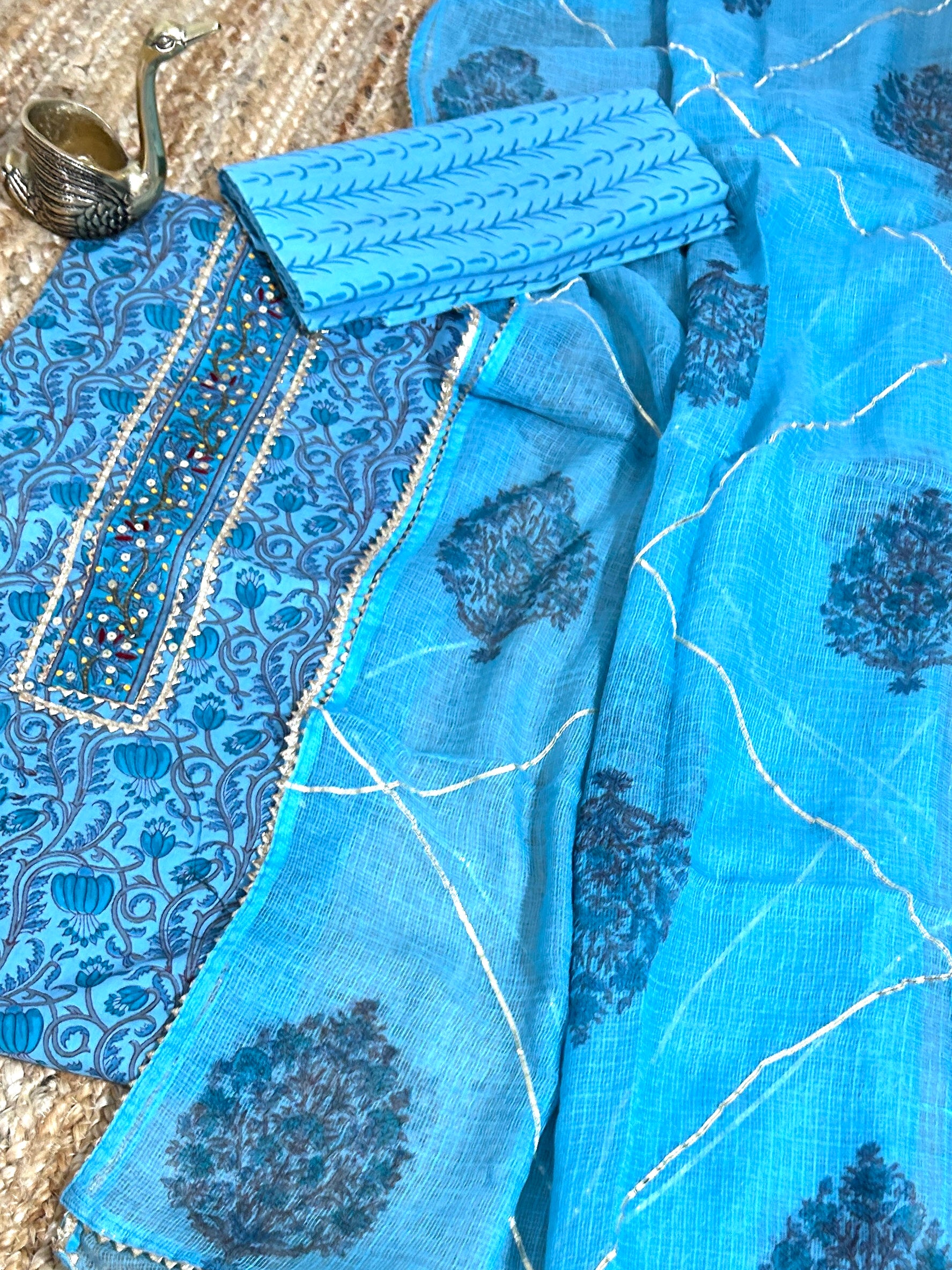 Hand BlockPrint Cotton Dress Material with Kota Doriya Dupatta
