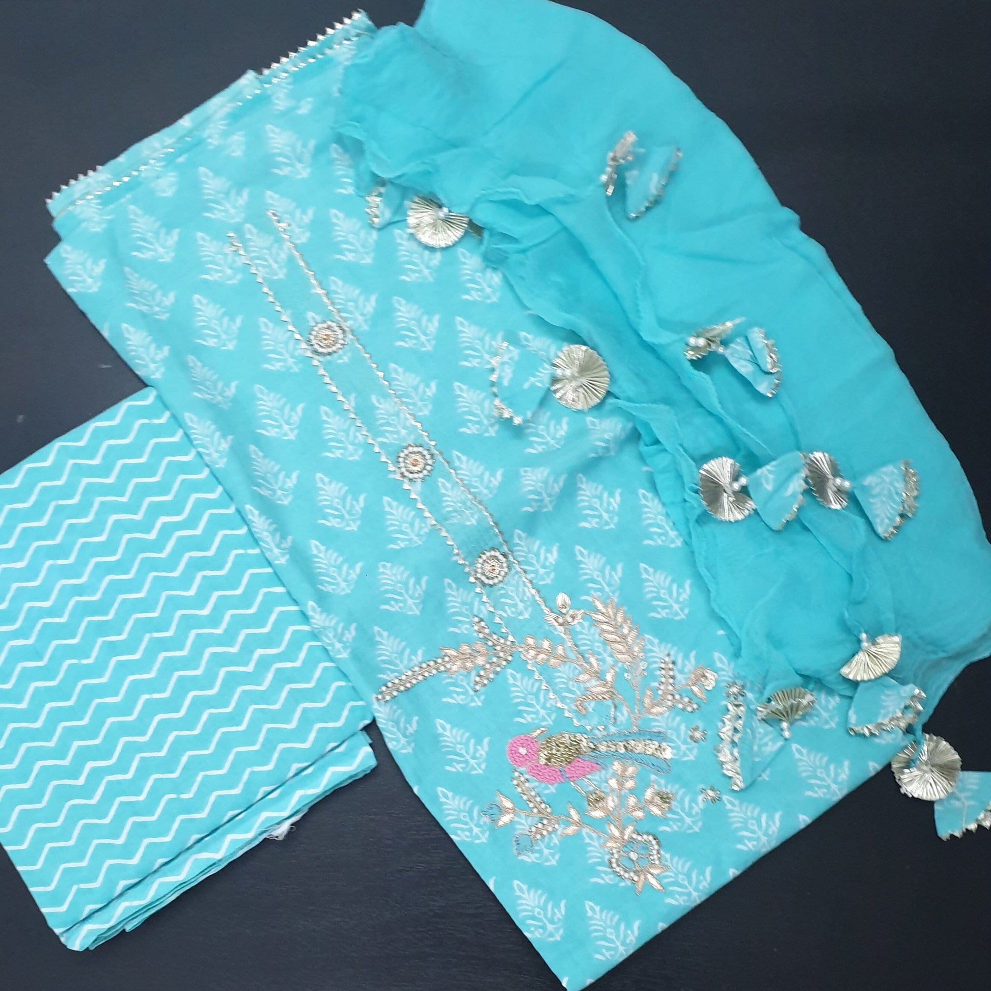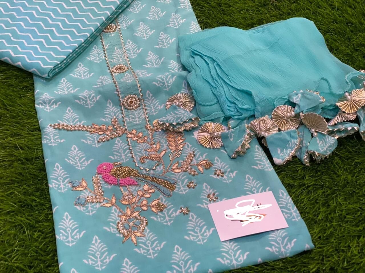 Cotton Handwork Dress Material with Pure Chiffon Dupatta