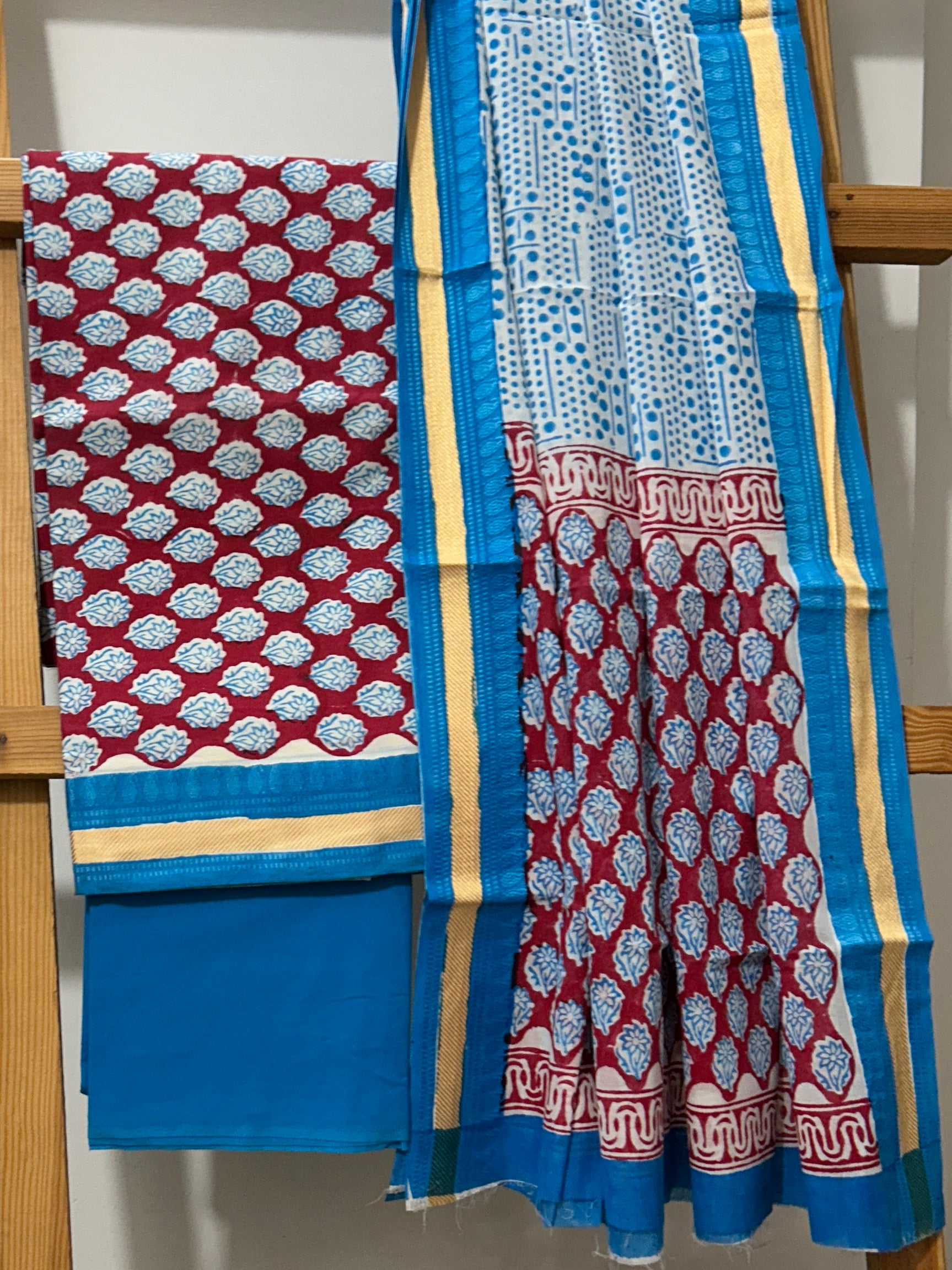 Cotton Hand Block Print Dress Material with Cotton Dupatta *