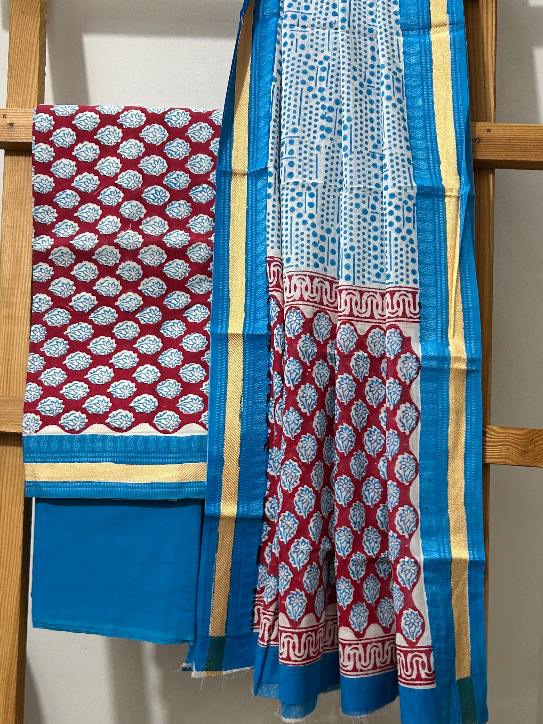 Cotton Hand BlockPrint Dress Material with Cotton Dupatta