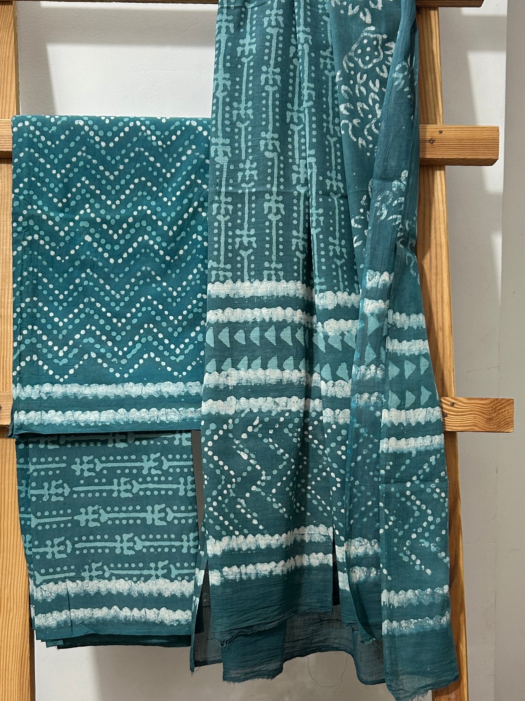 Cotton Hand Block Print Dress Material with Cotton Dupatta