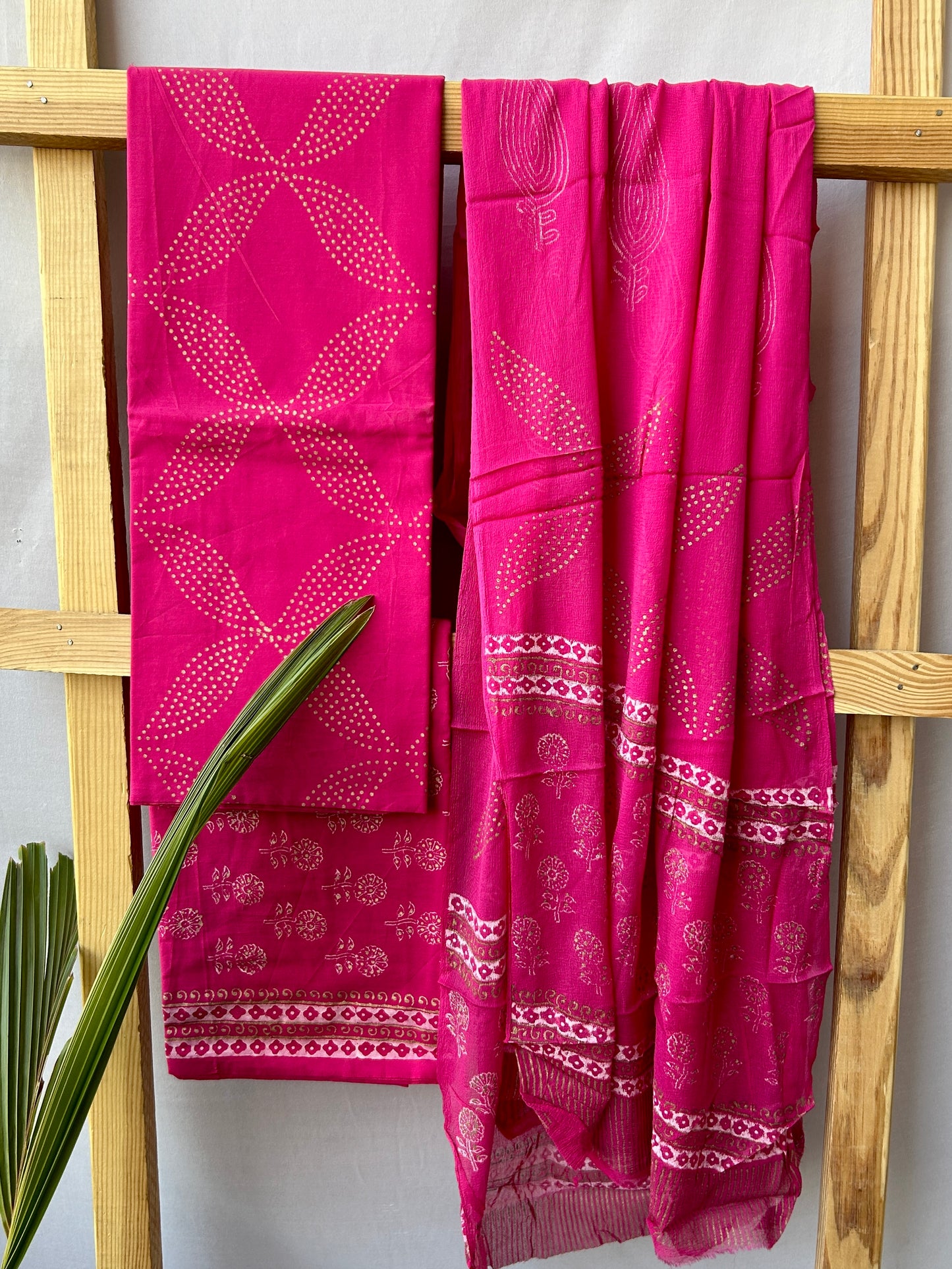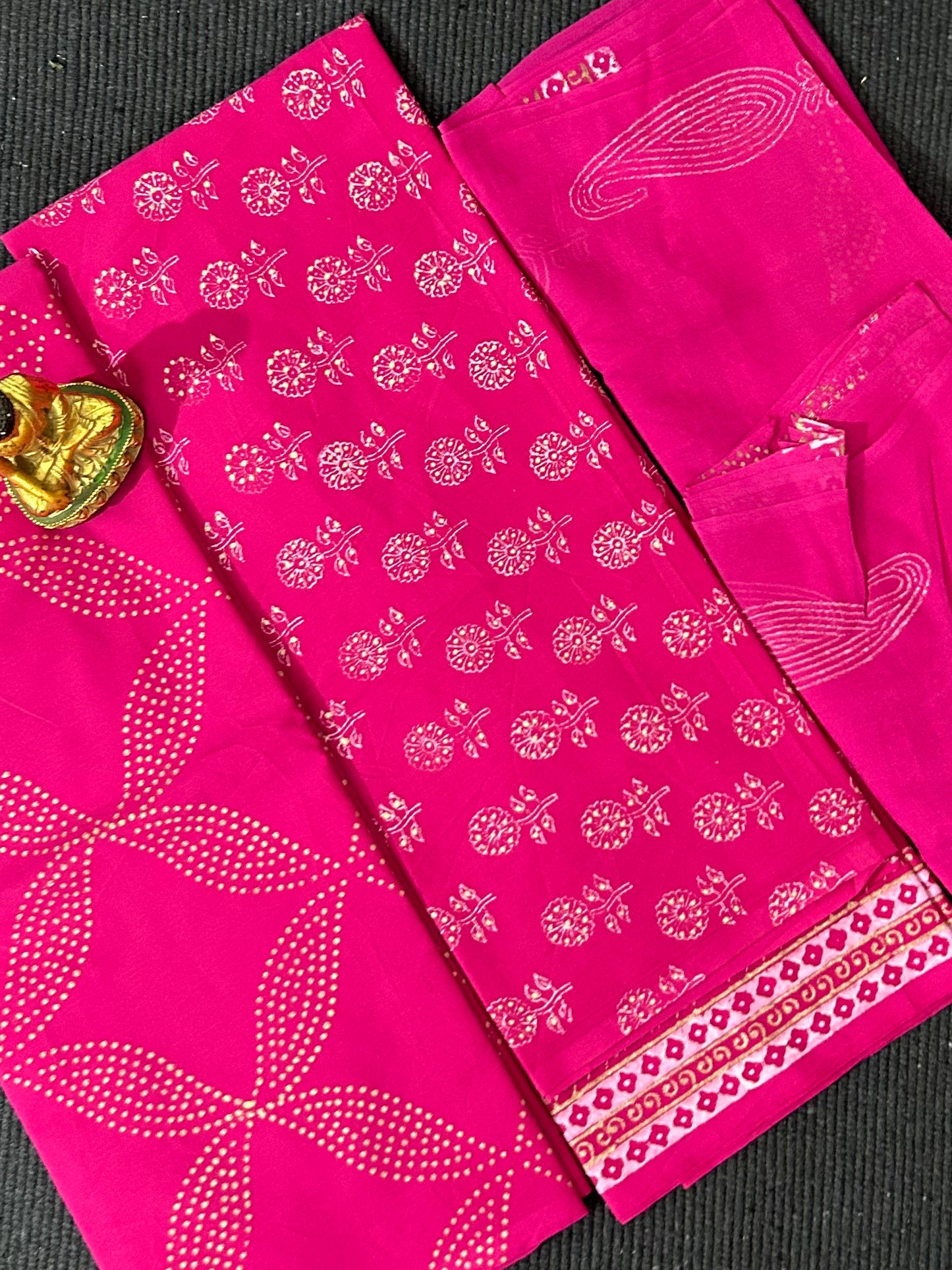 Hand BlockPrinted Cotton Dress Material with Chiffon Dupatta