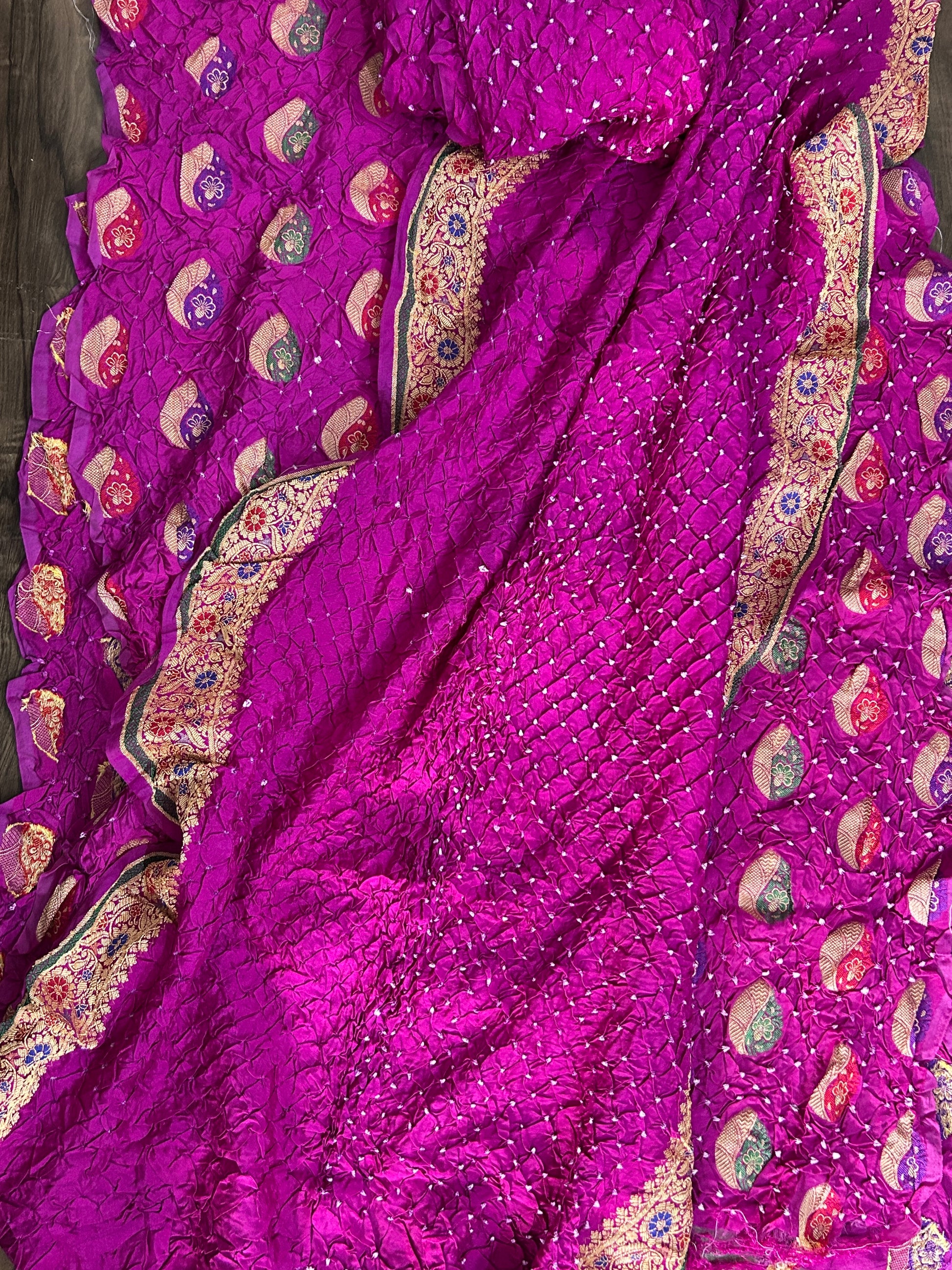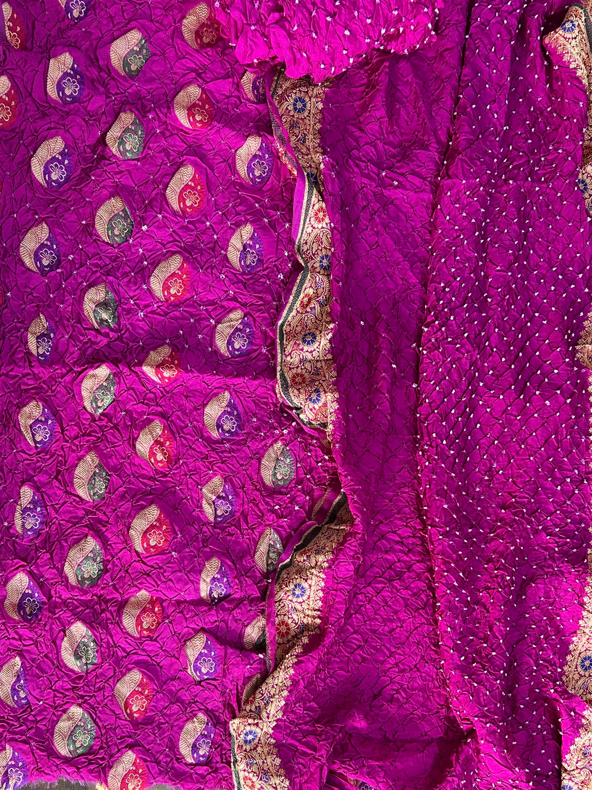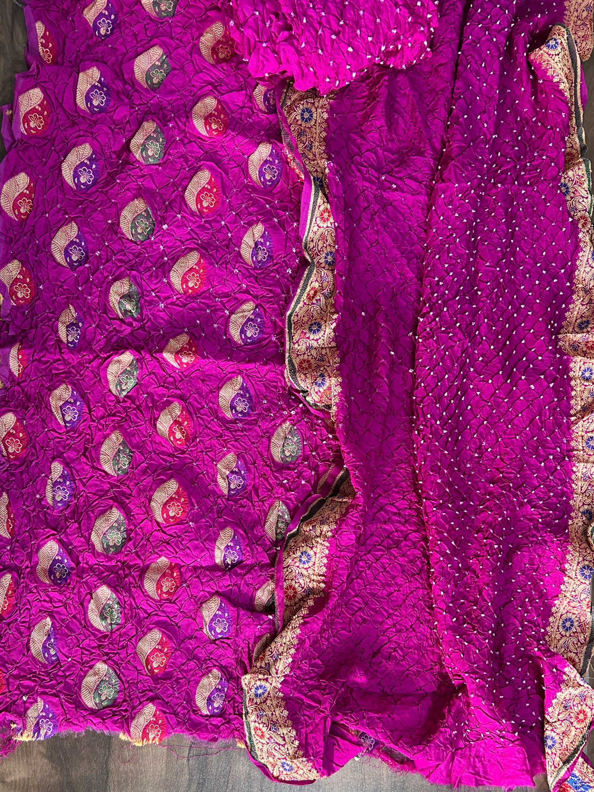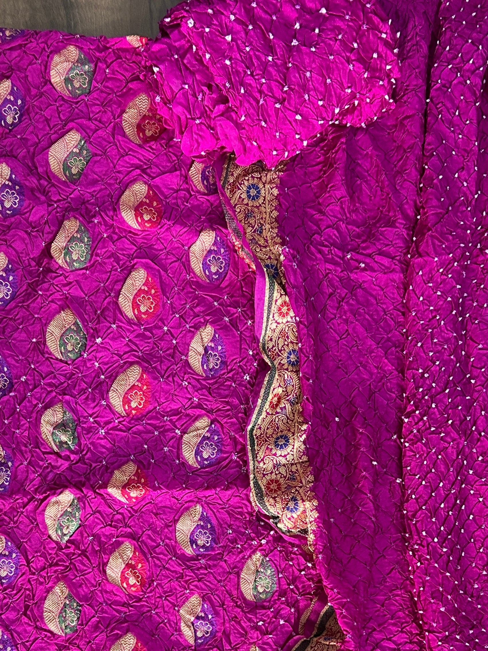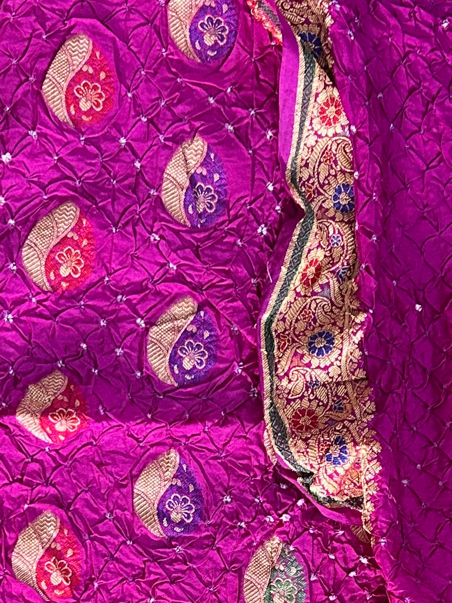 - Top : Gadhwal Silk with weaving and Bandhani work (2.5 Meter)