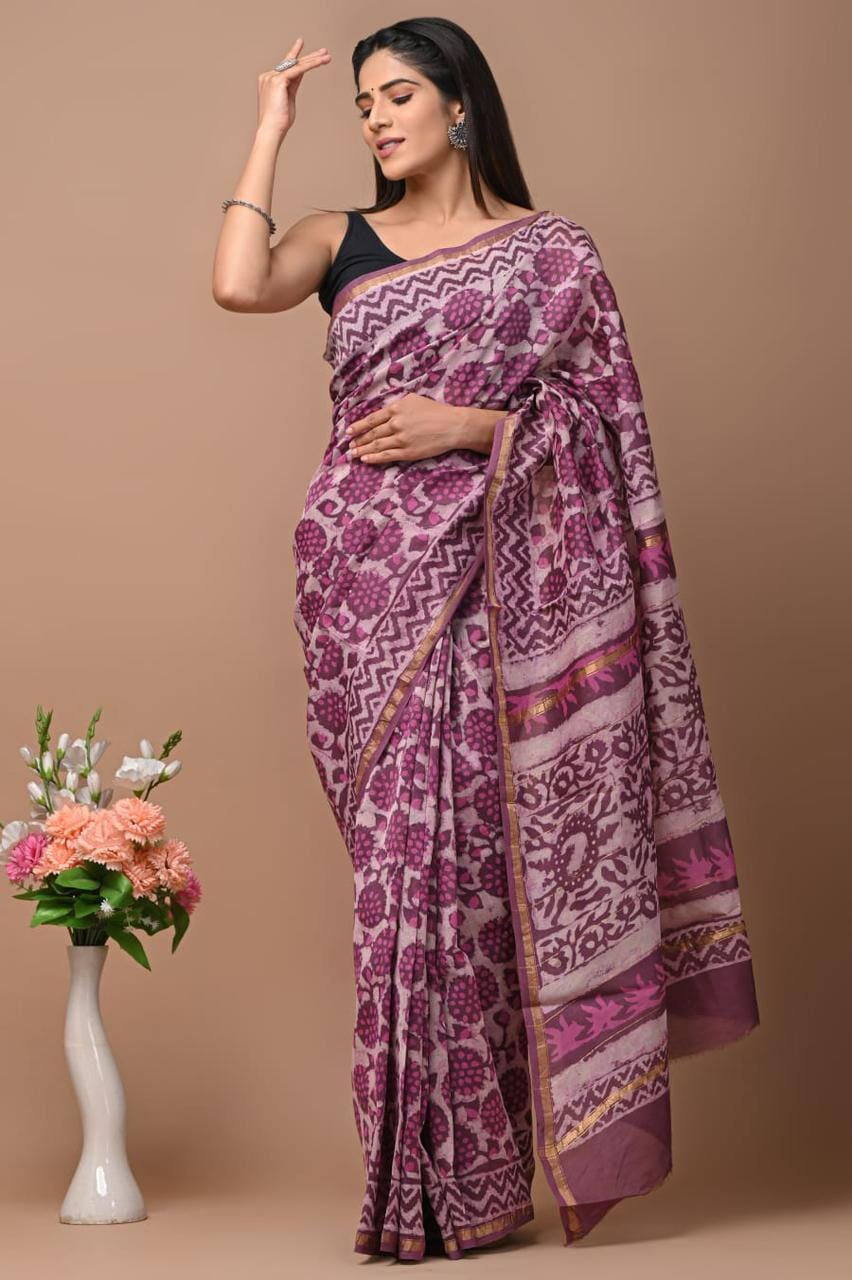 Hand BlockPrint Chanderi Silk Cotton Saree