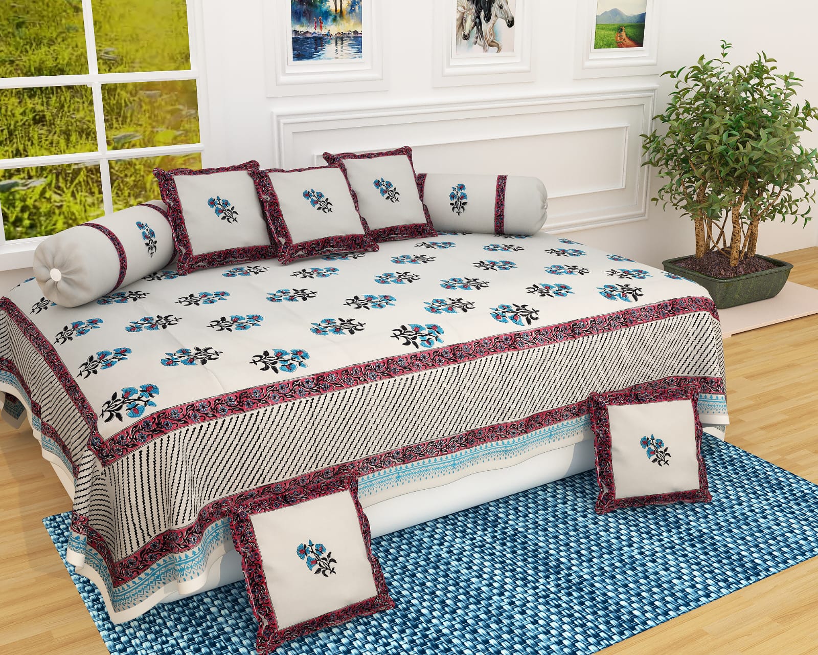 Jaipur Hand Block Printed Pure Cotton Diwan Set