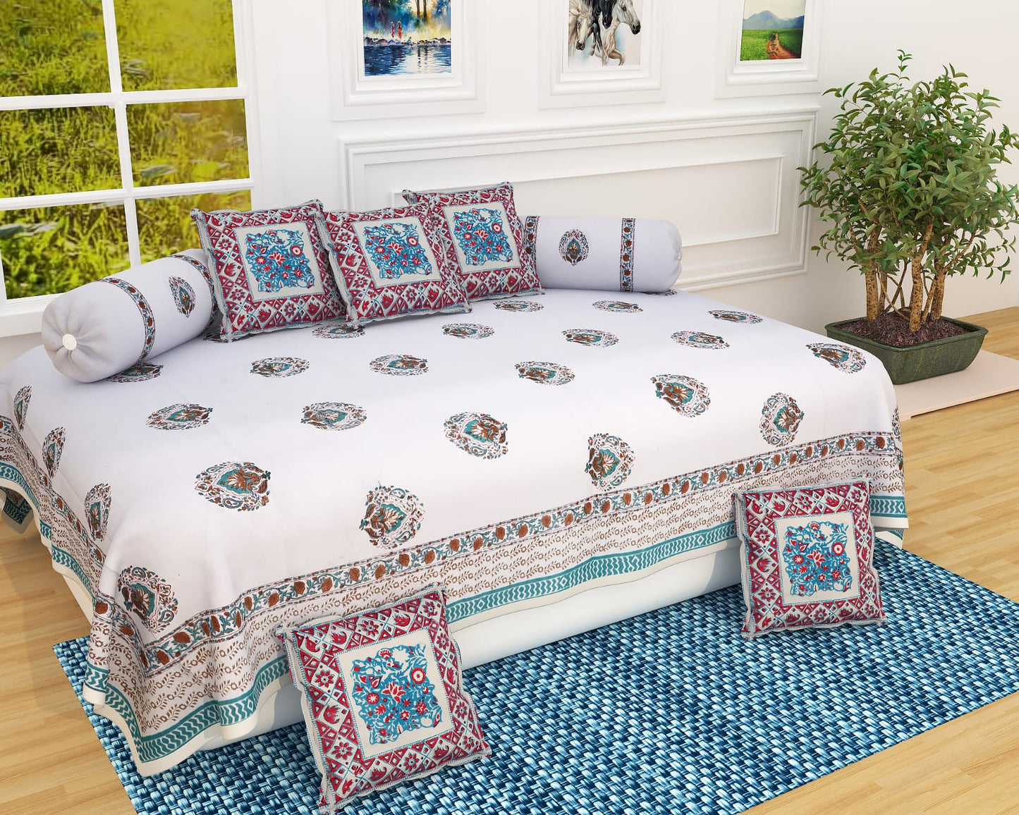 Jaipur Hand Block Printed Pure Cotton Diwan Set