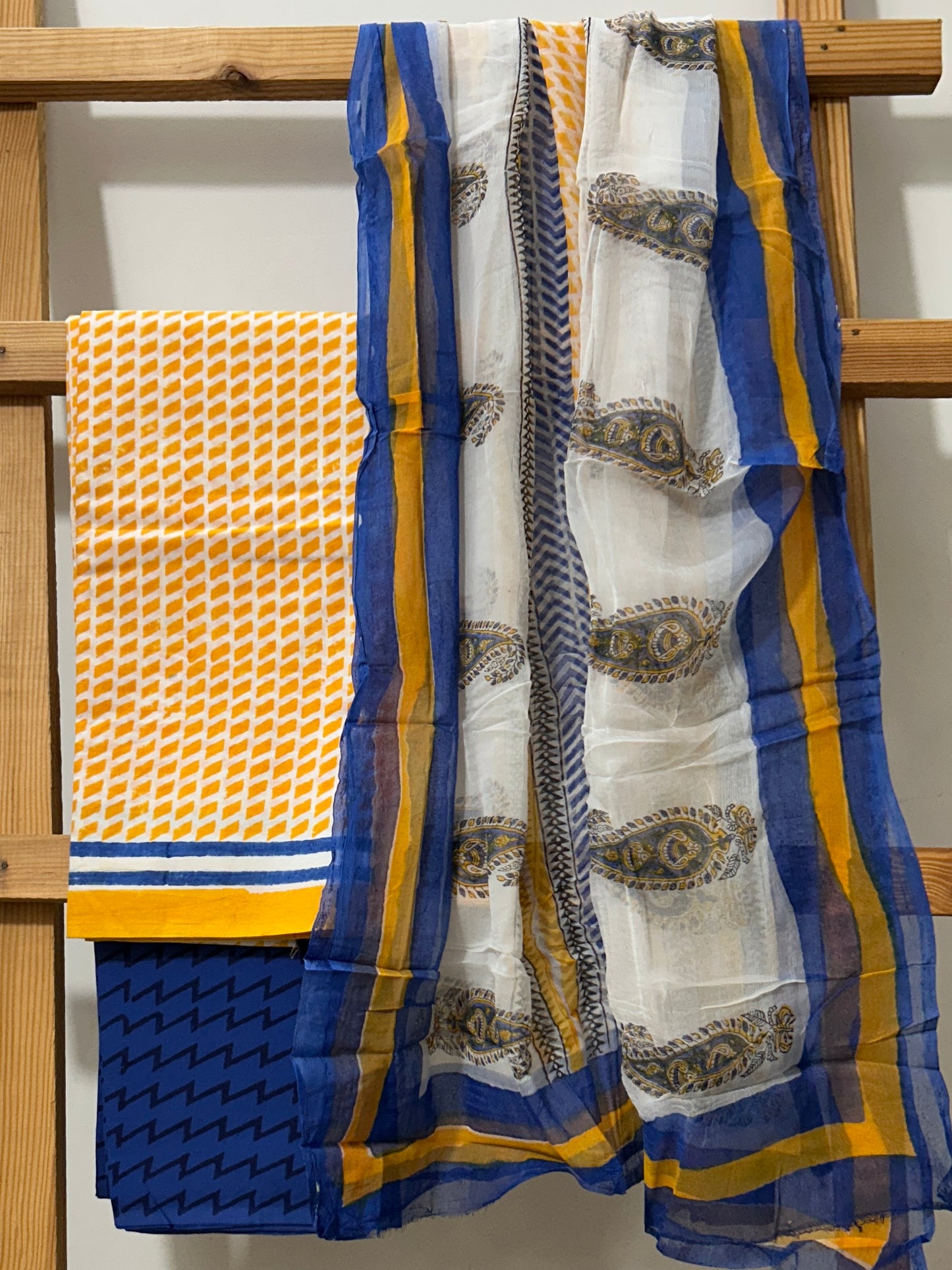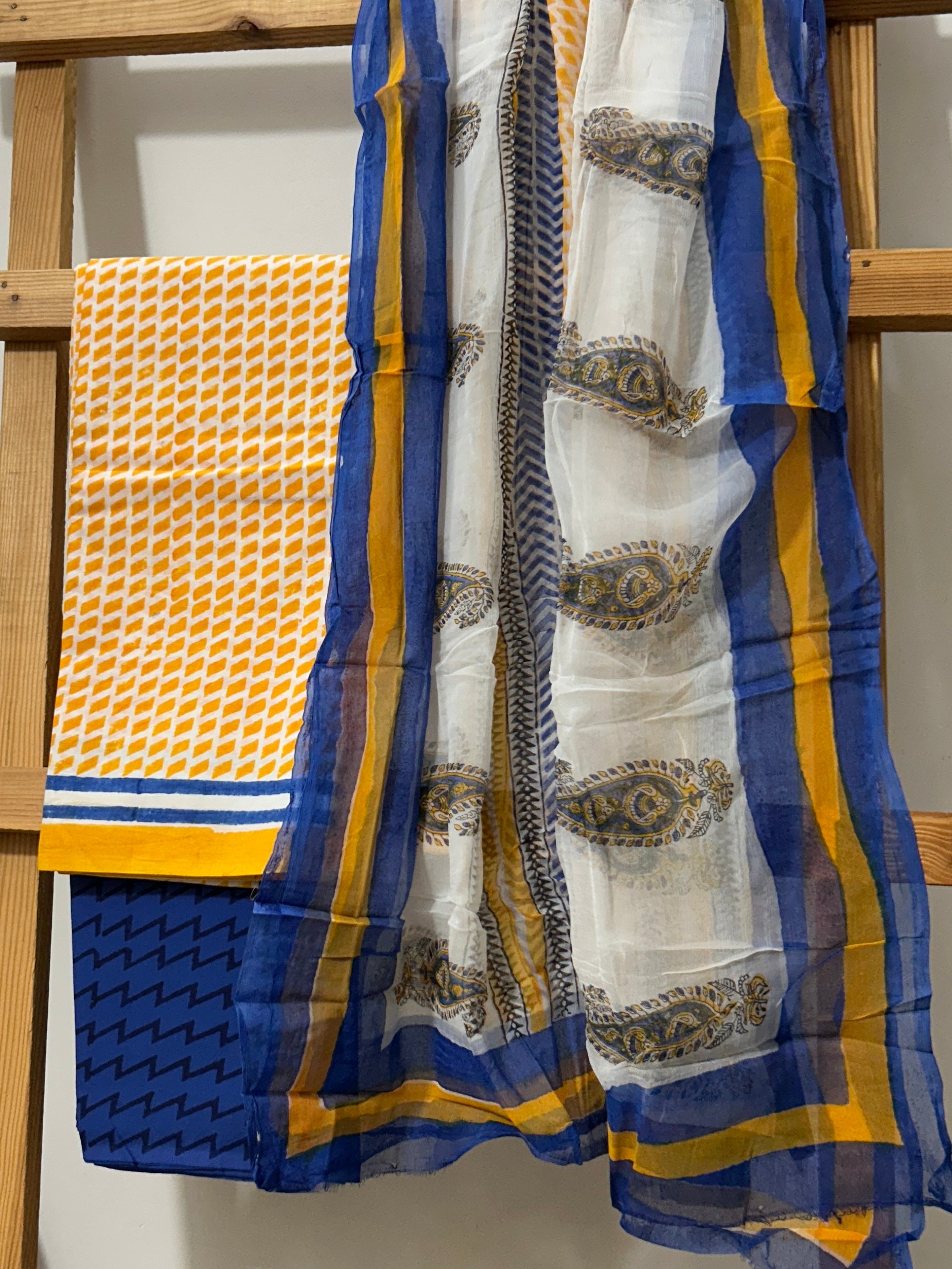 Hand BlockPrint Cotton Dress Material with Chiffon Dupatta