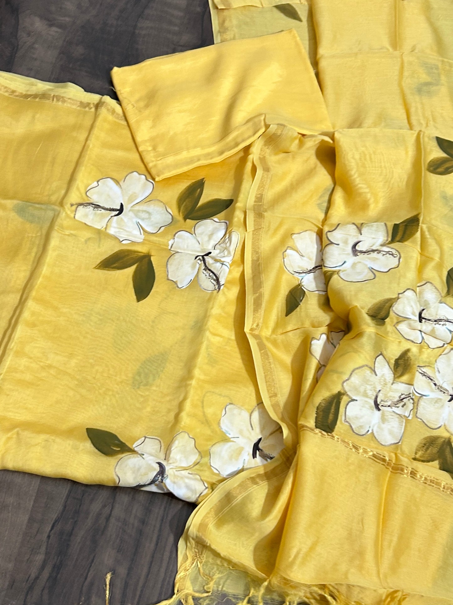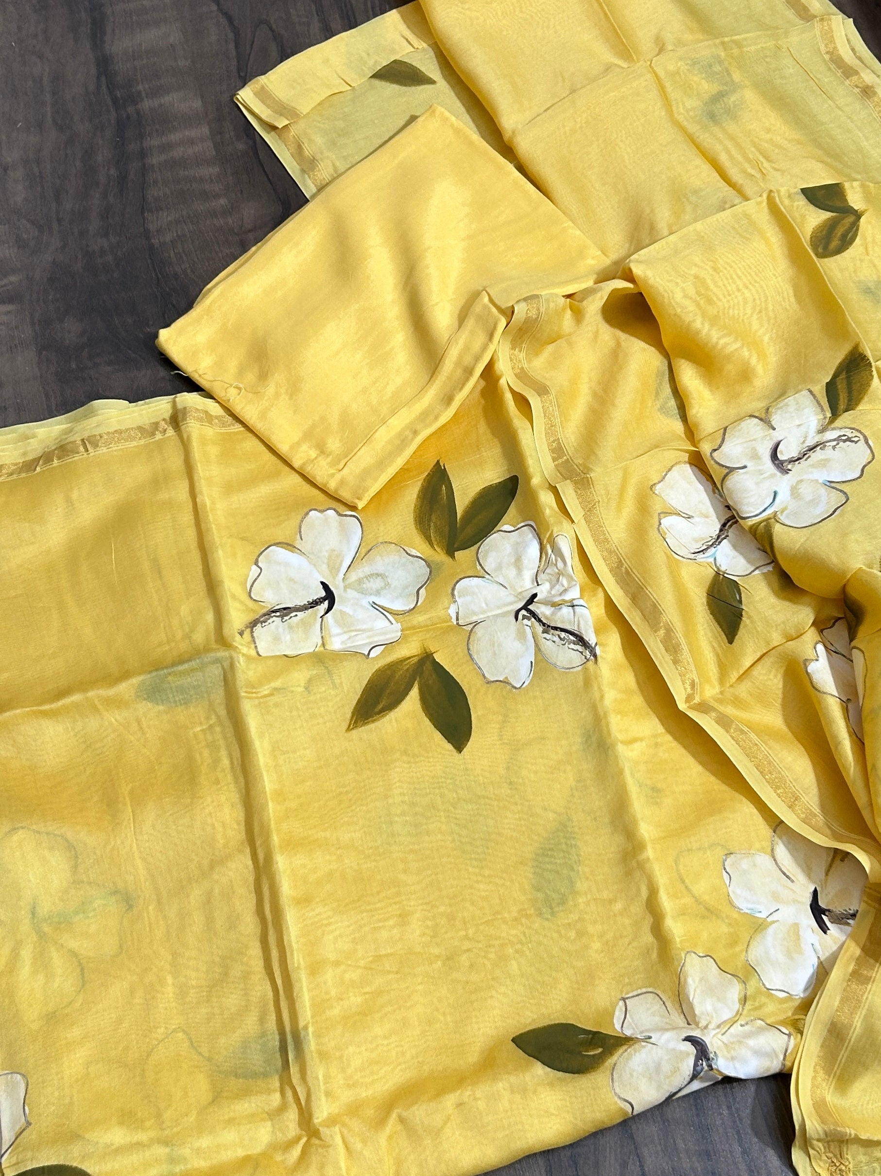 Hand Painted Chanderi Silk Cotton Dress Material