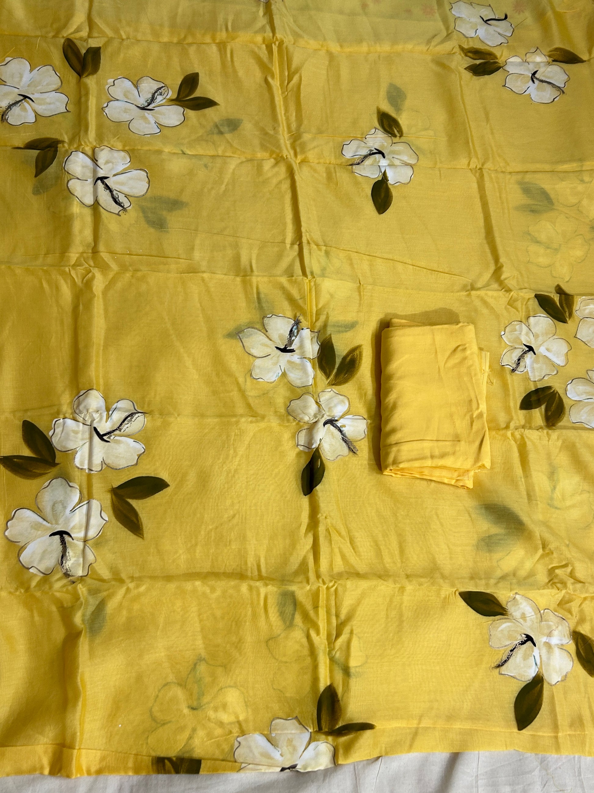 Hand Painted chanderi Silk Cotton Dress Material