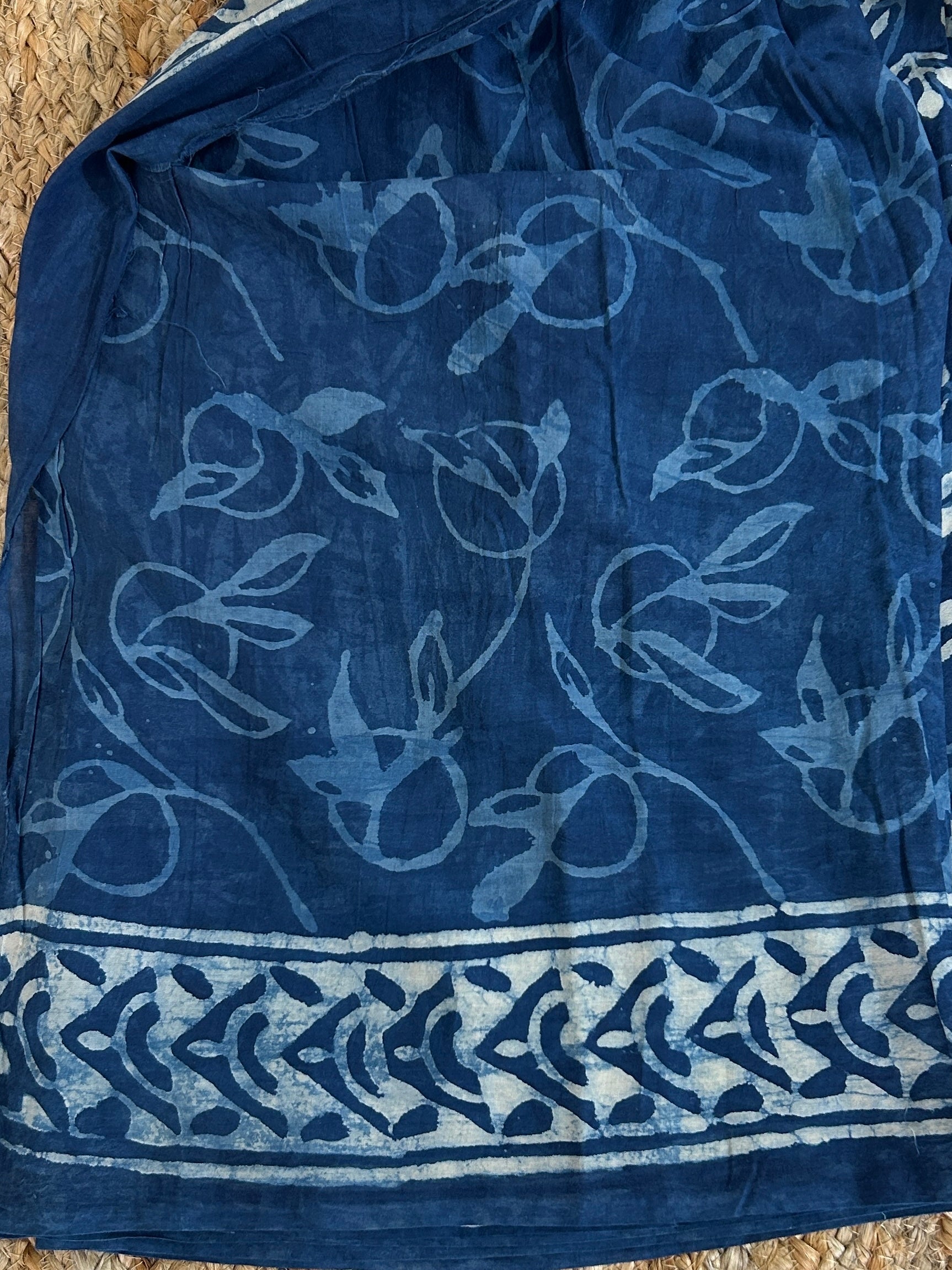 Indigo Cotton Hand BlockPrint Saree with Blouse