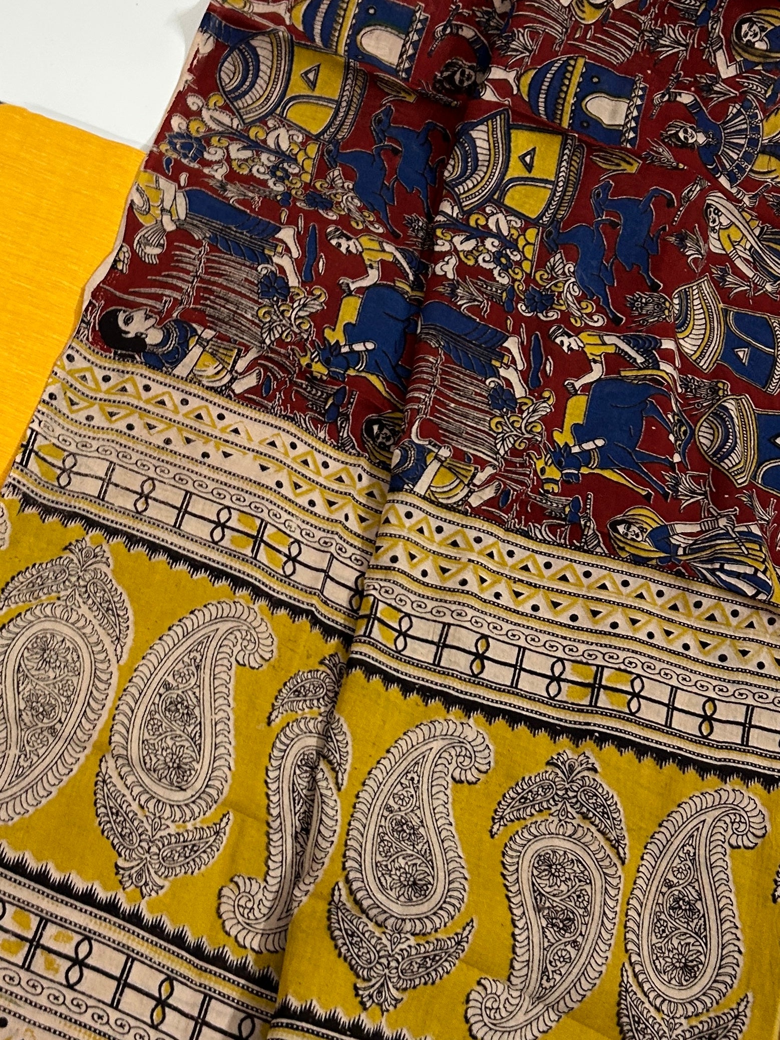 Experience the timeless charm of traditional artistry with this Kalamkari Cotton Dress Material. Crafted from Pure cotton and featuring intricate village-inspired Kalamkari motives, it merges cultural heritage with everyday comfort. Ideal for creating elegant outfits that showcase detailed hand-painted designs, this dress material offers both style and ease for warm weather wear.