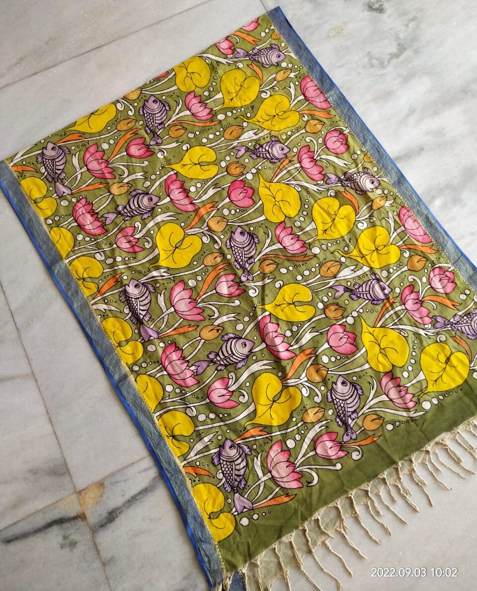 Kalamkari Mangalagiri Cotton Hand Painted Dupatta