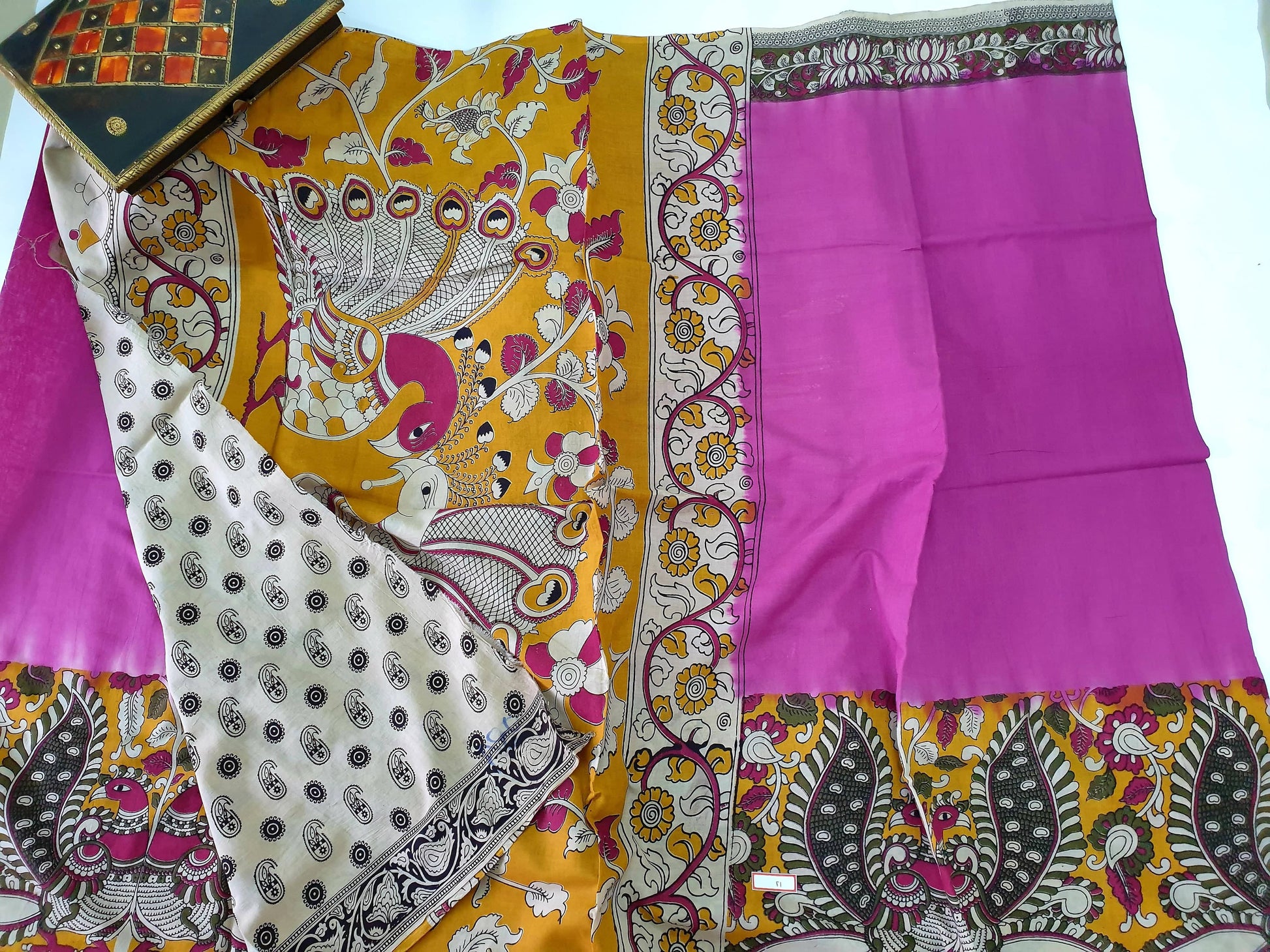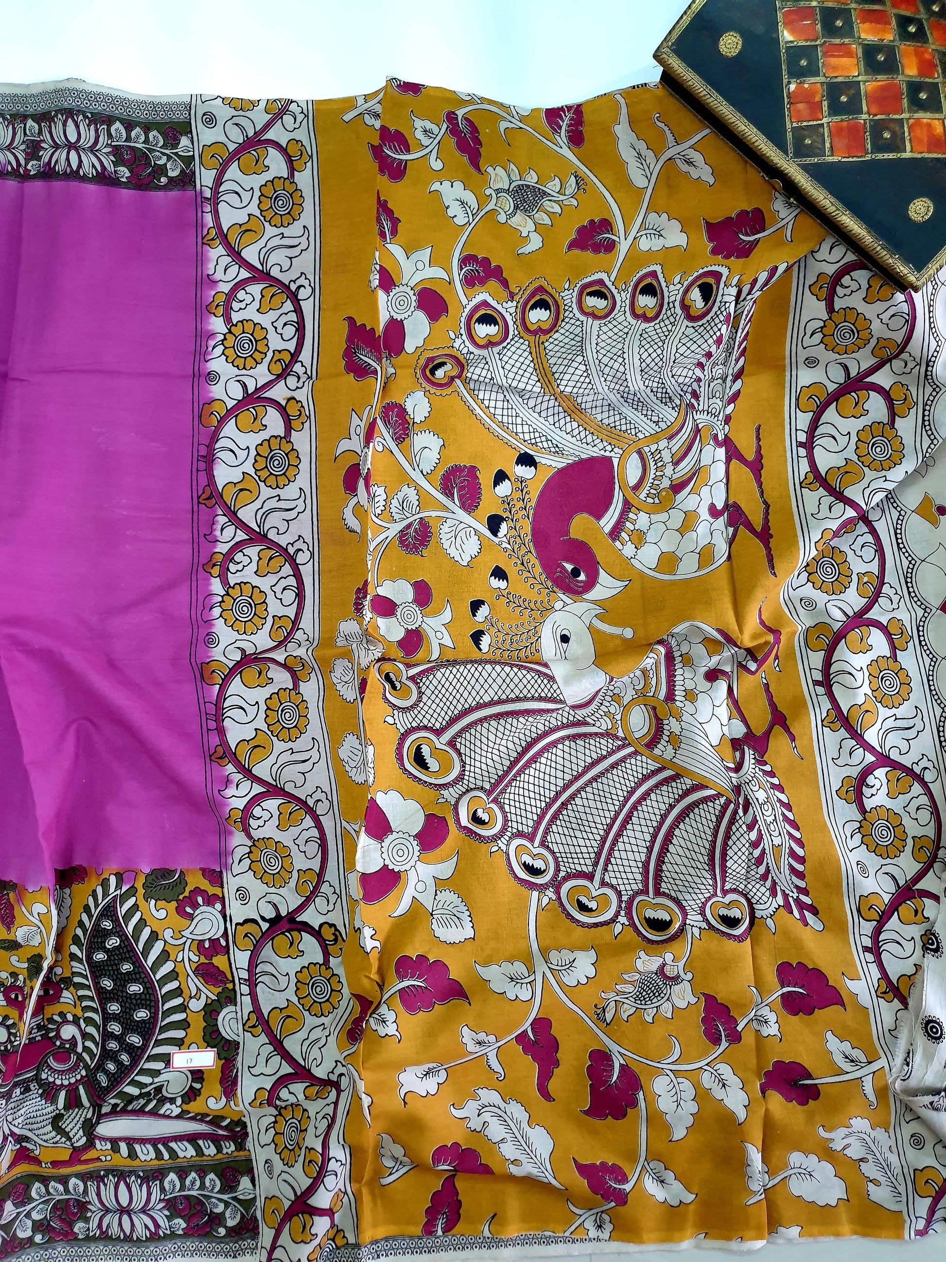 Kalamkari HandBlock Printed Malmal Cotton Saree with blouse.