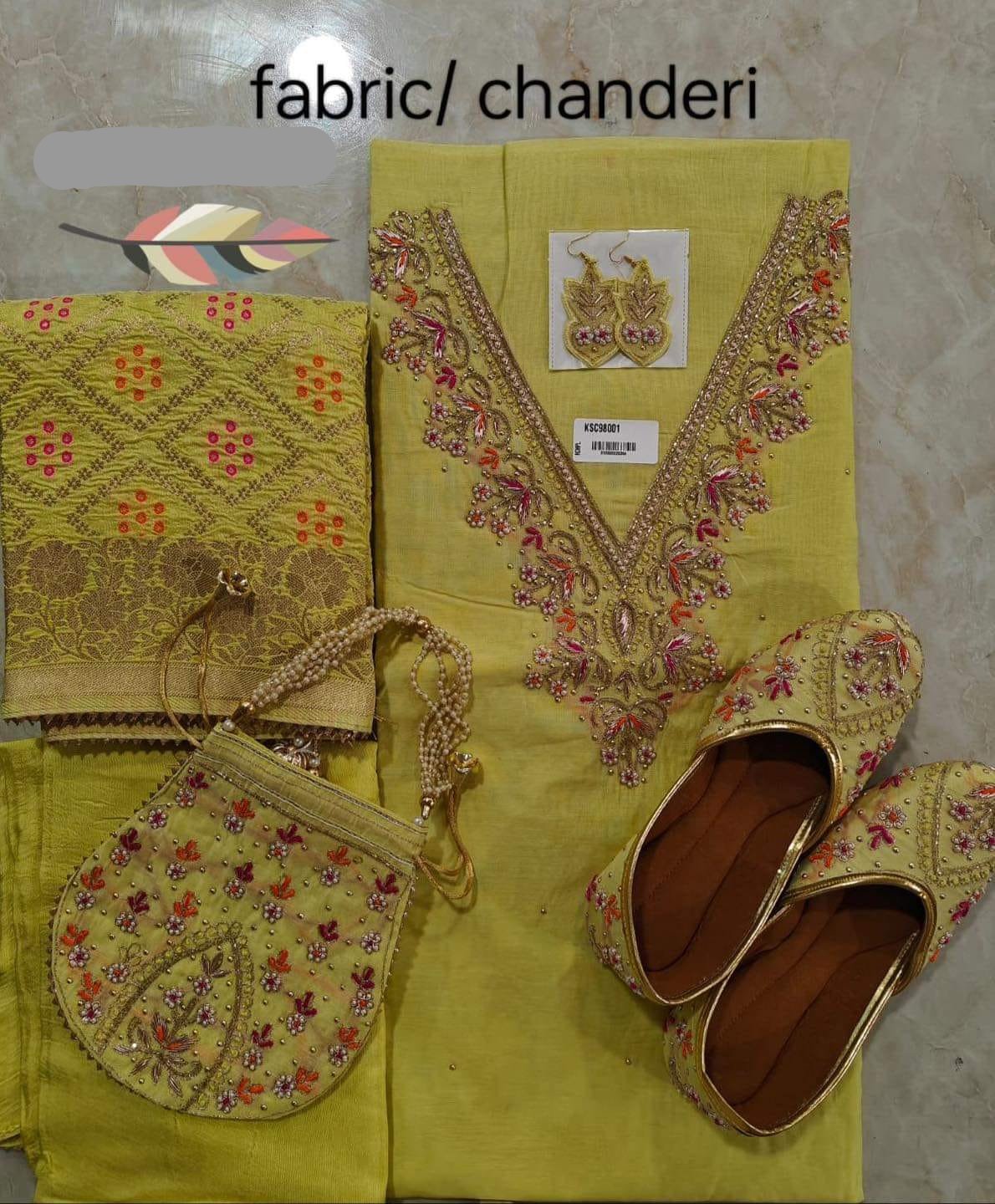 Banarasi Dress Material with Matching Potli, Jootis and Danglers