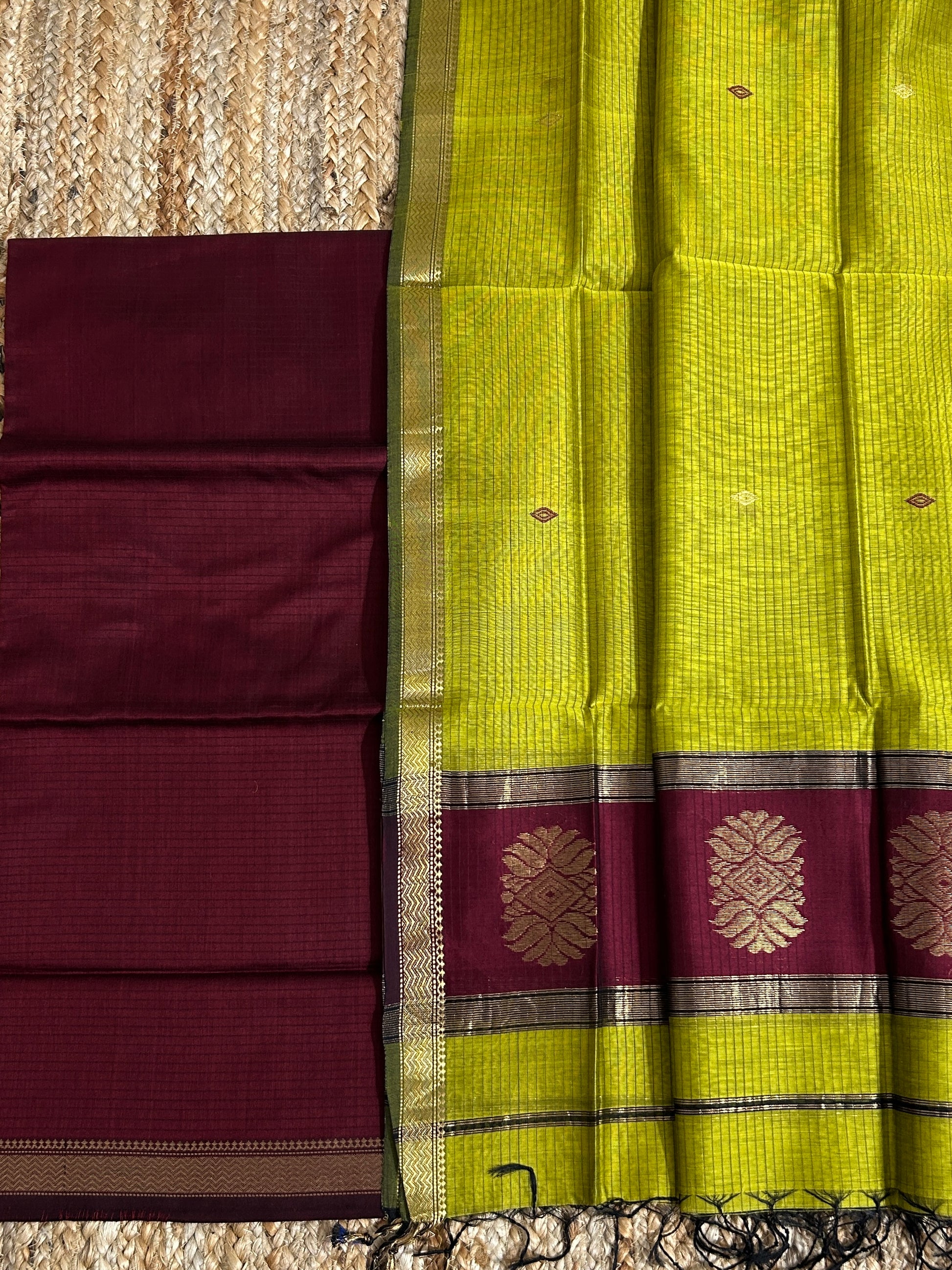 Maroon Green Maheshwari Silk Cotton Top Dupatta Set