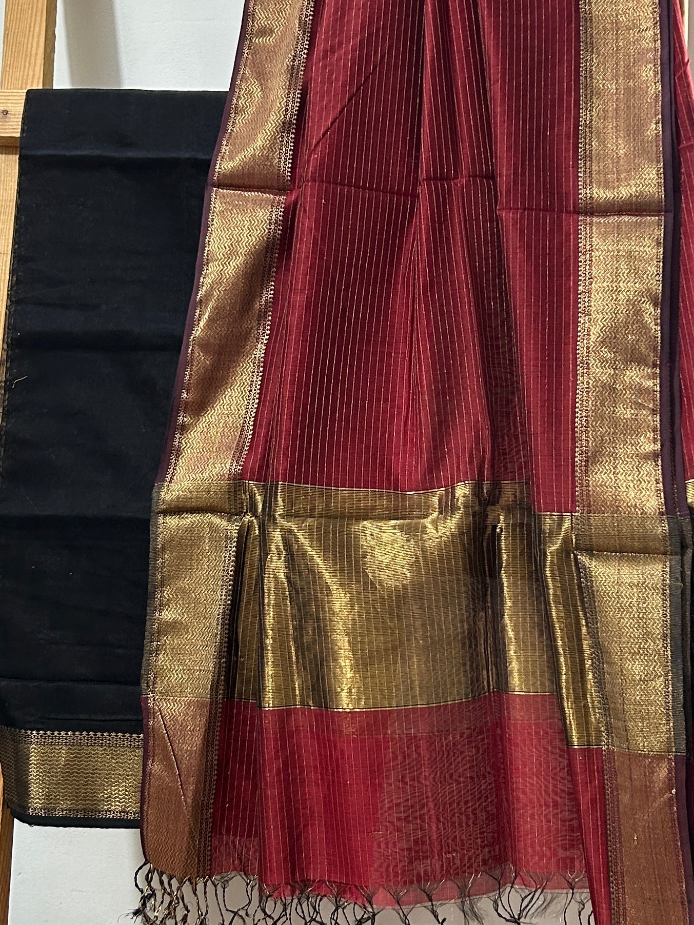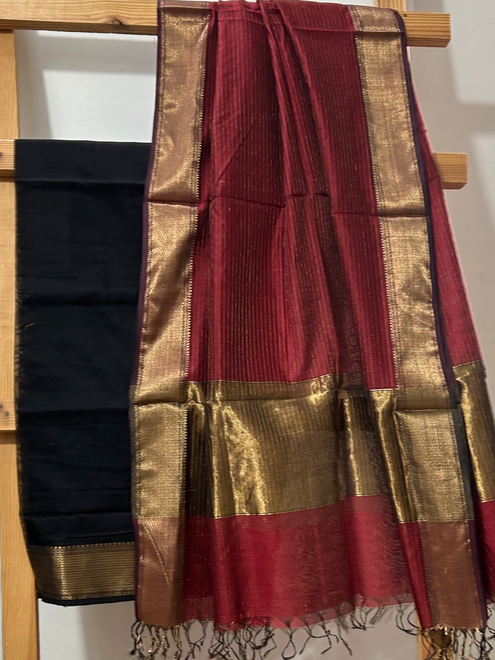 - Dupatta - Maheshwari Silk Cotton with zari border ( 2.5 meter)