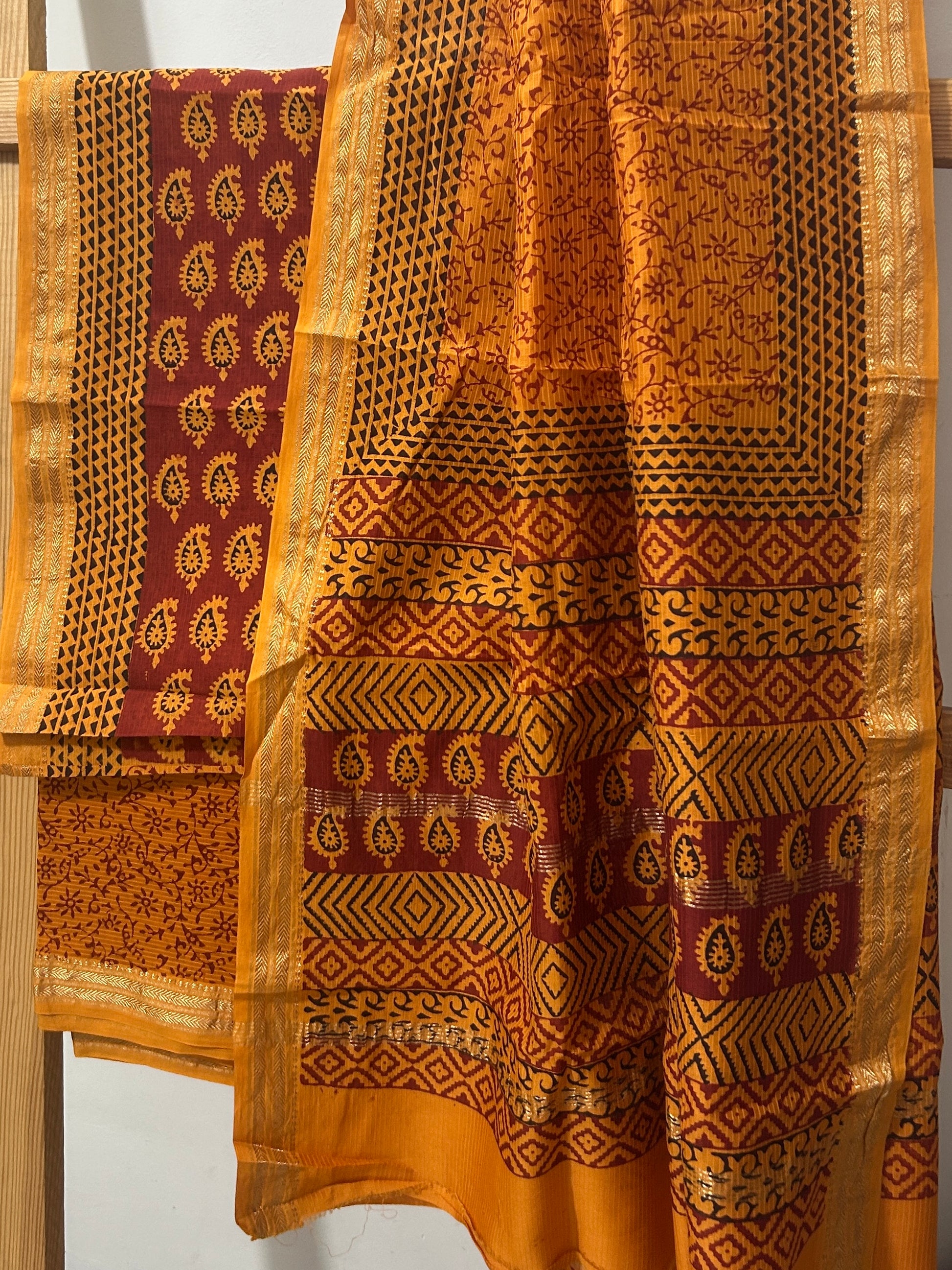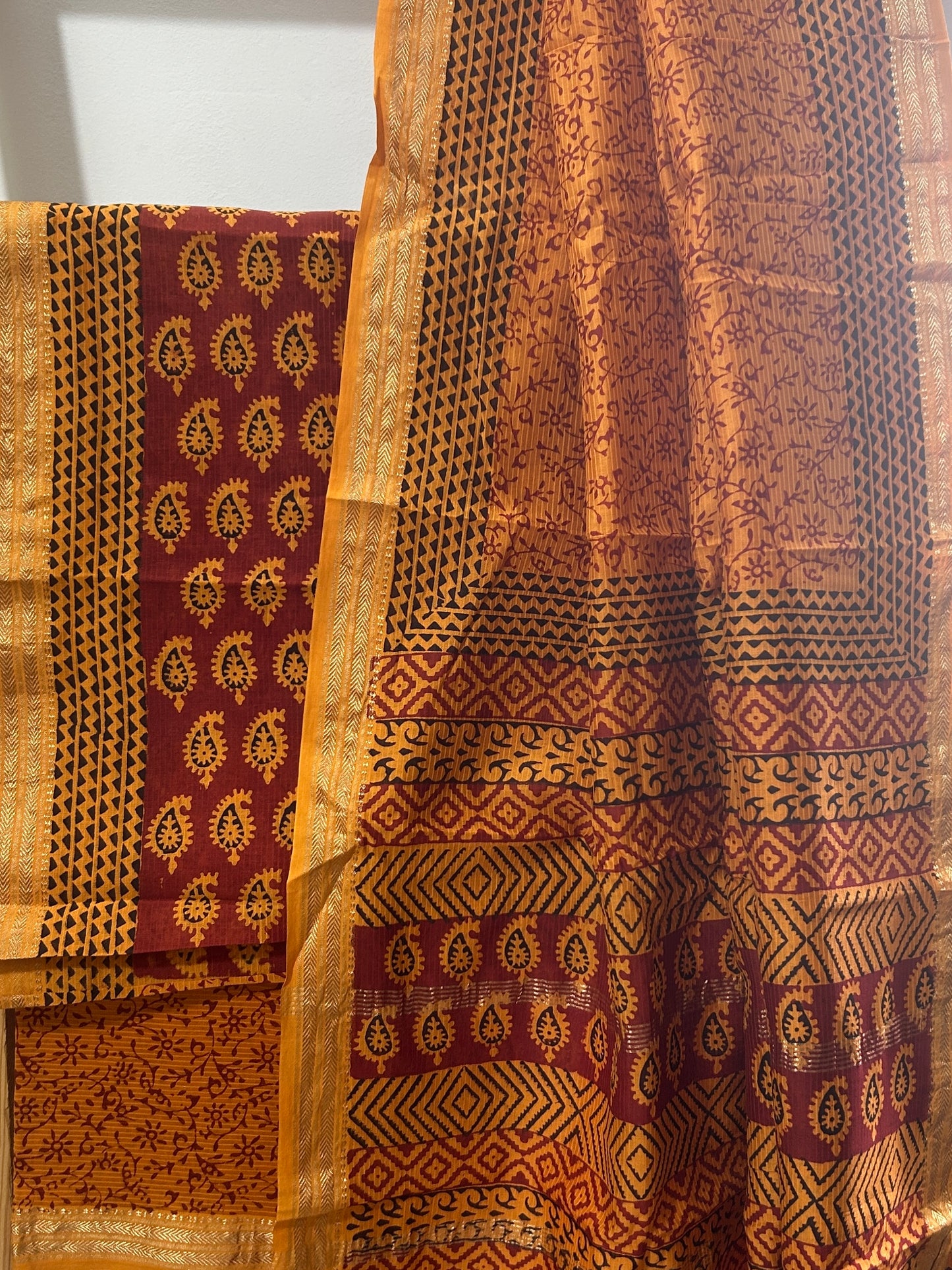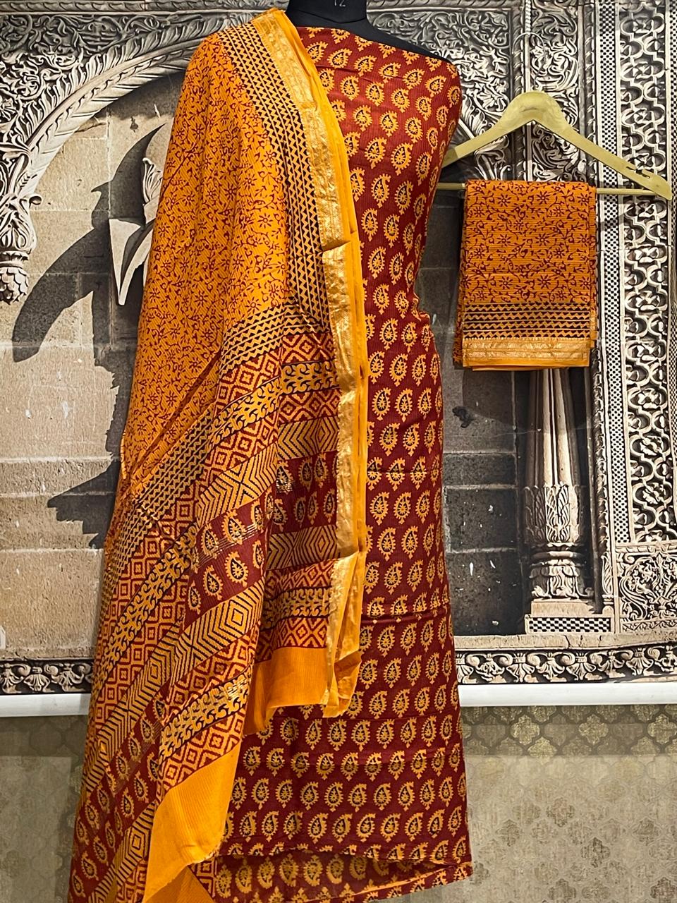 Bagh Print Maheshwari Silk Cotton Dress Material