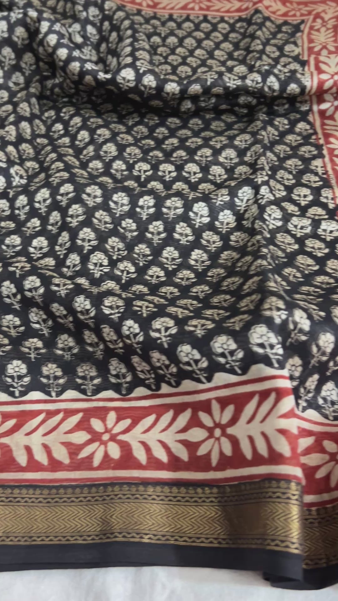 36. Hand Block Print Maheshwari Silk Cotton Saree with Gold zari Border