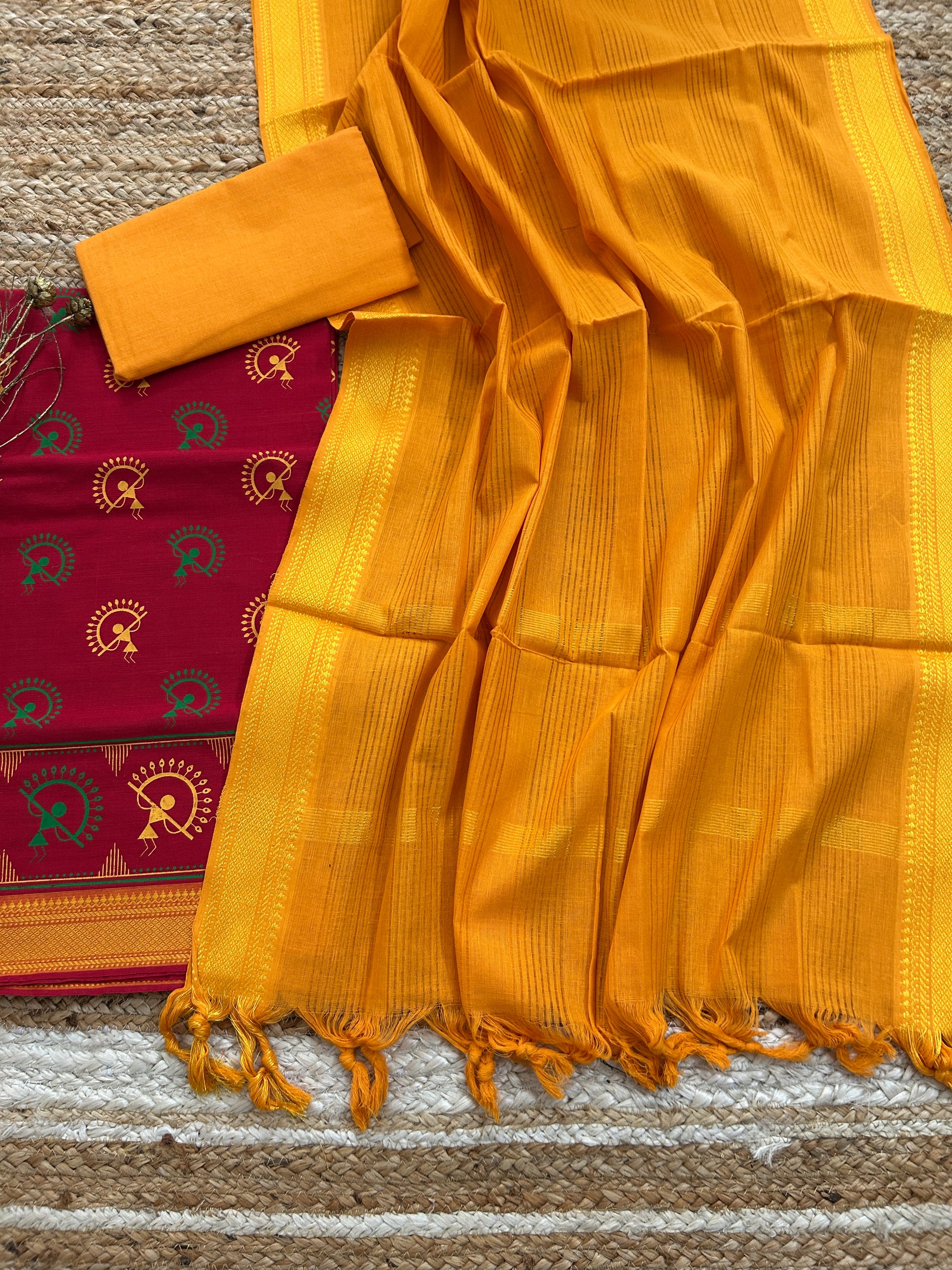 - Top : Mangalgiri Cotton with zari border (2.5 Meter)