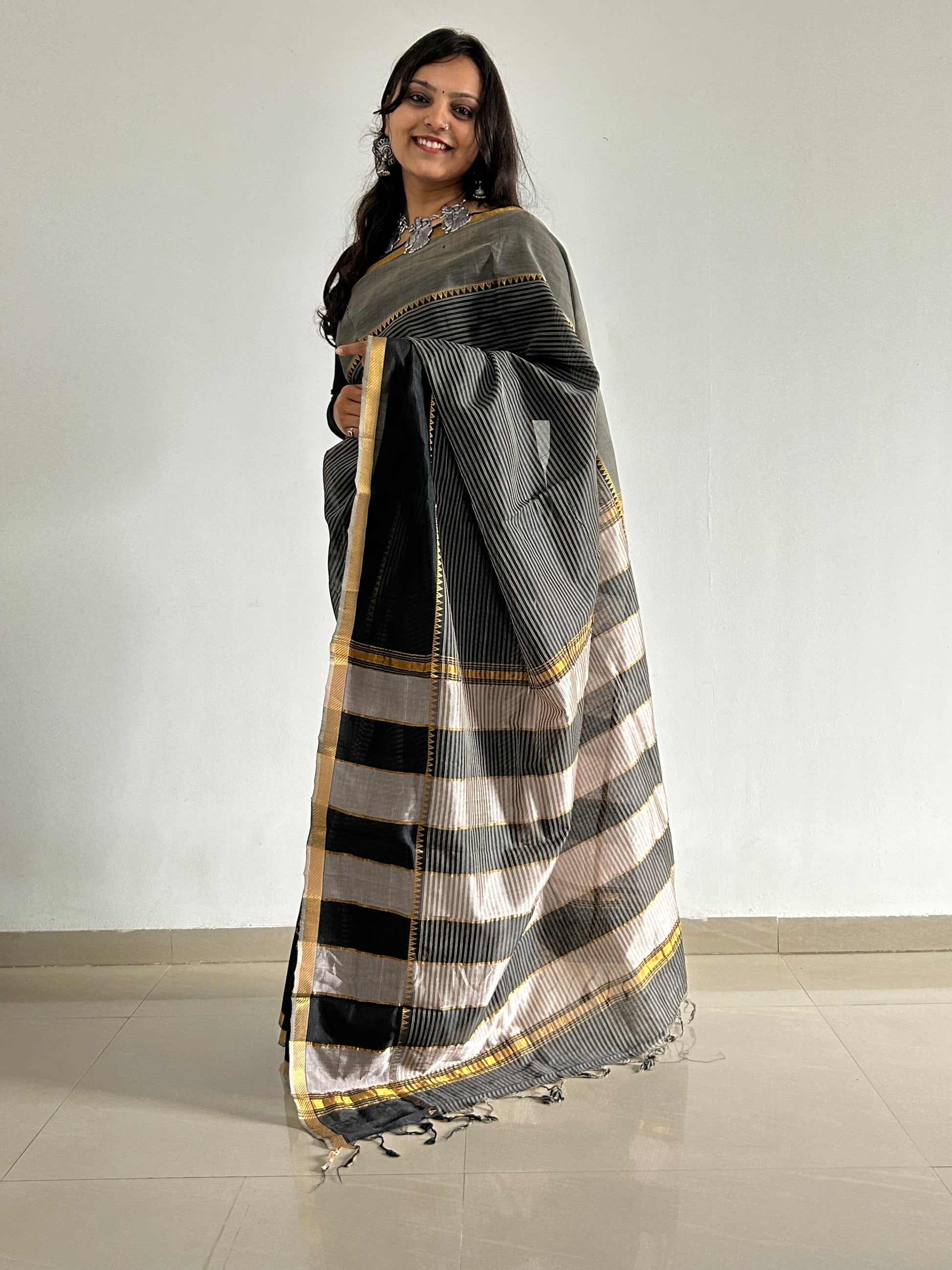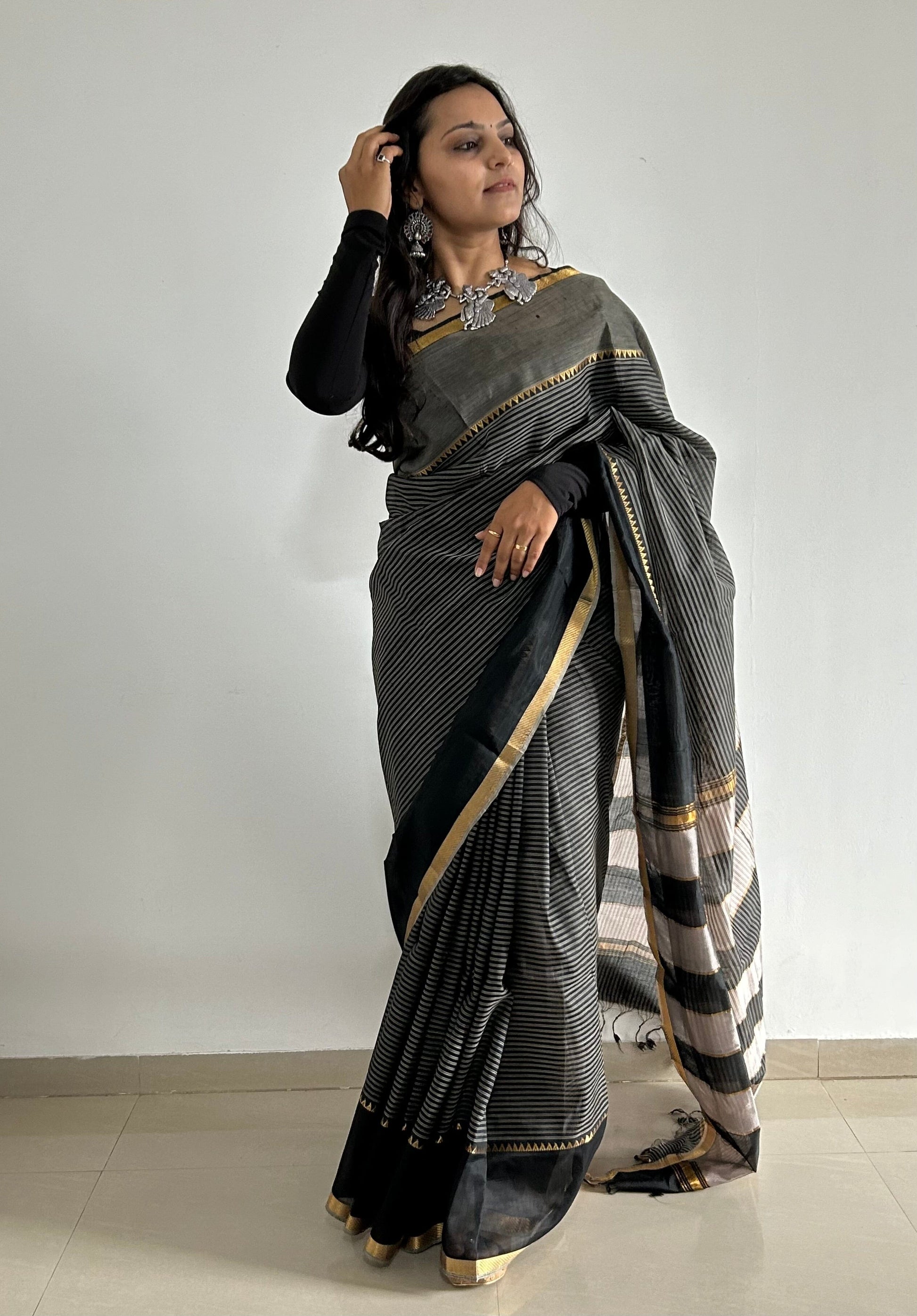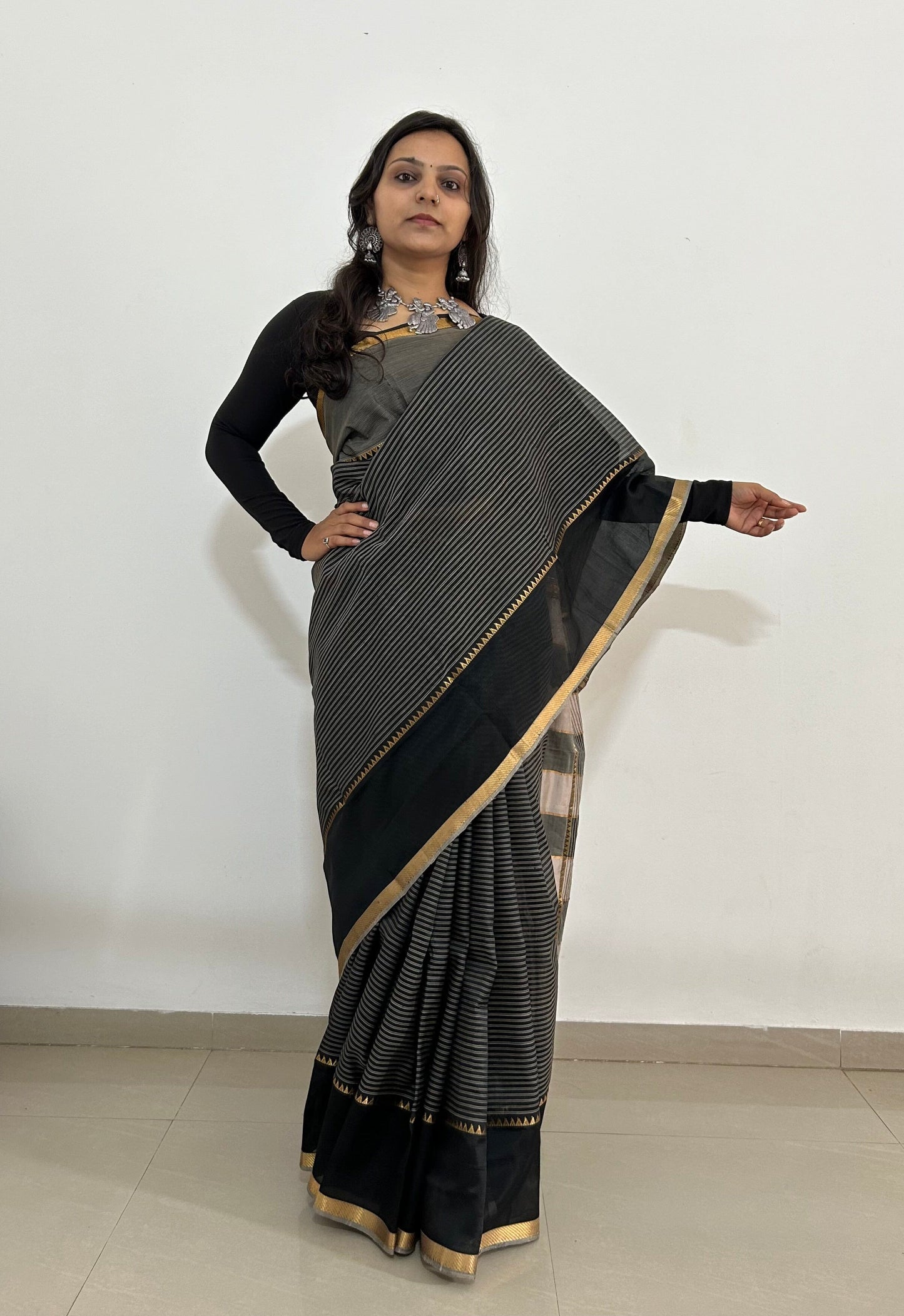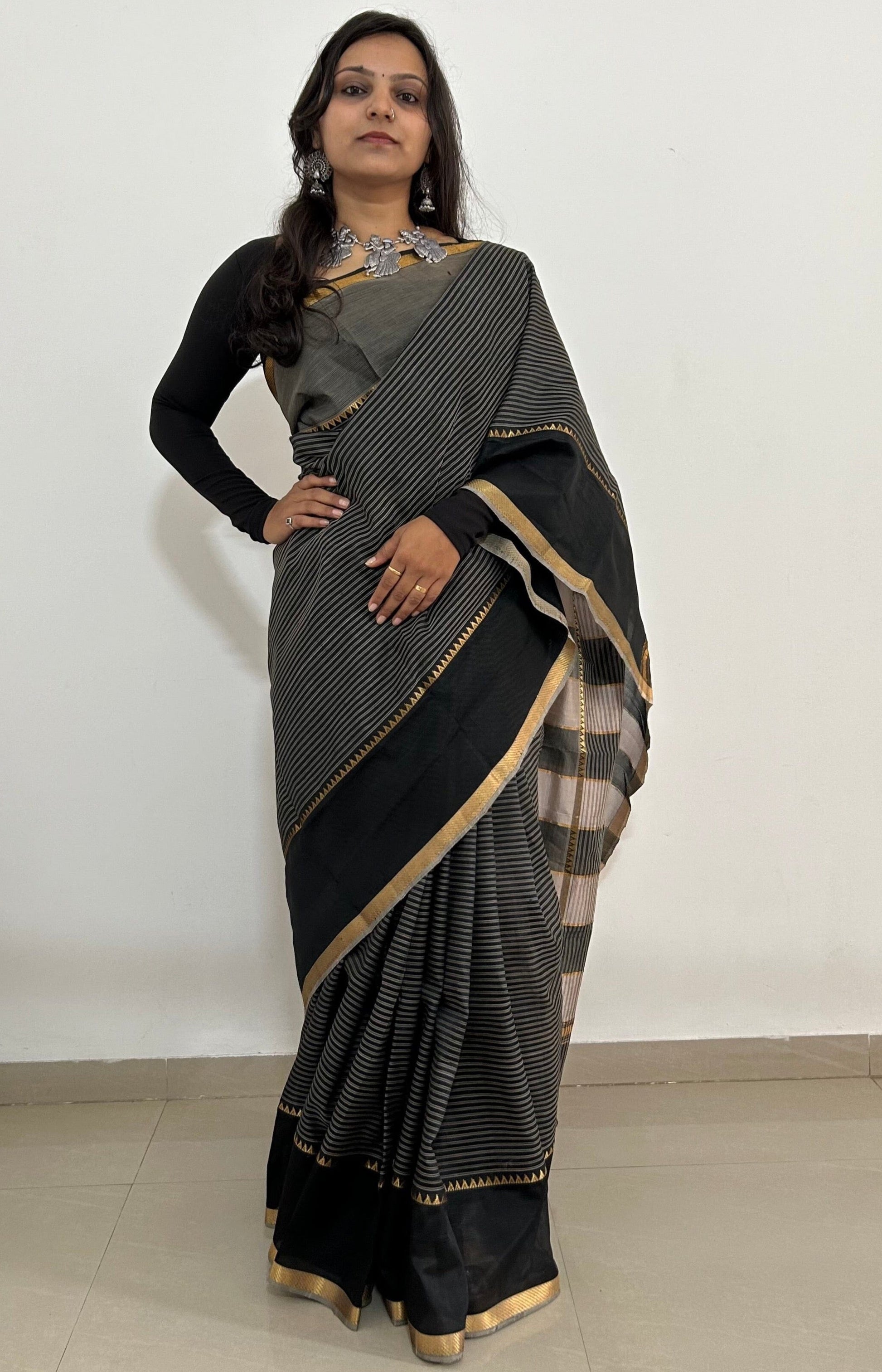 This traditional Mangalgiri Silk Cotton Saree is hand woven for a beautiful and unique look. Its light and airy design keeps you comfortable, perfect for those hot summer days! The saree measures 5.5m and is sure to make you look and feel your best.