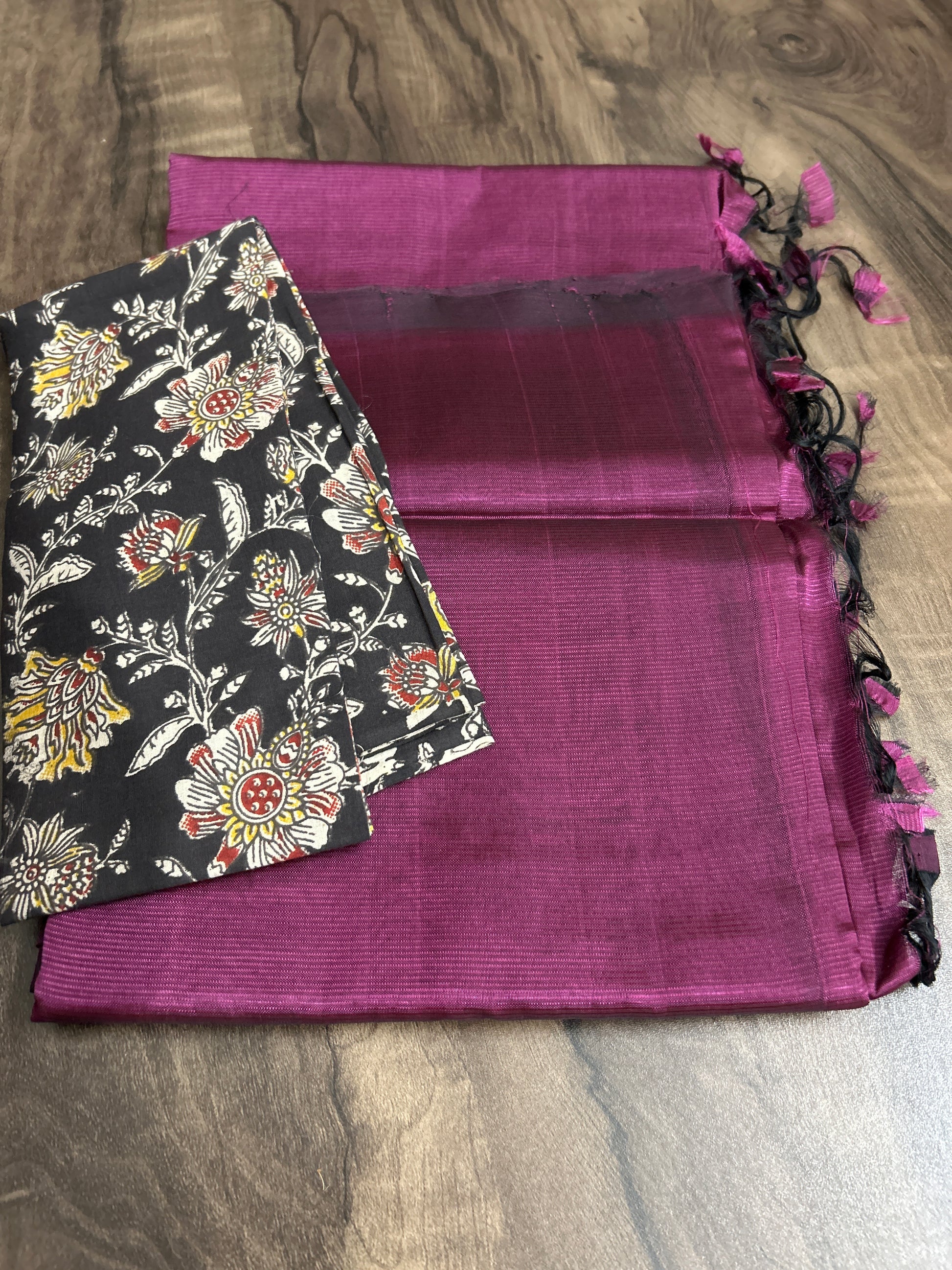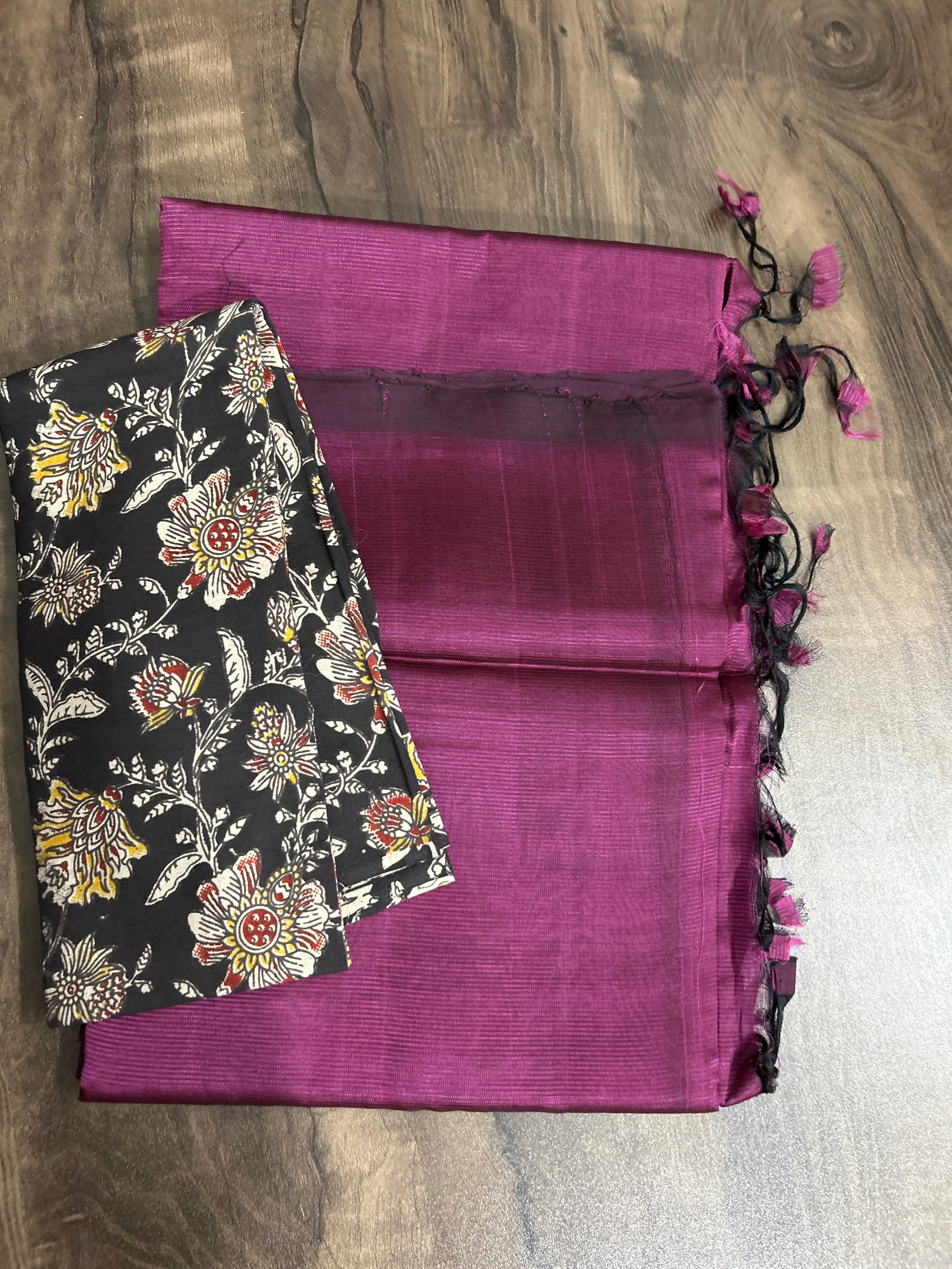 Mangalgiri Silk Cotton Saree with Extra kalamkari Blouse