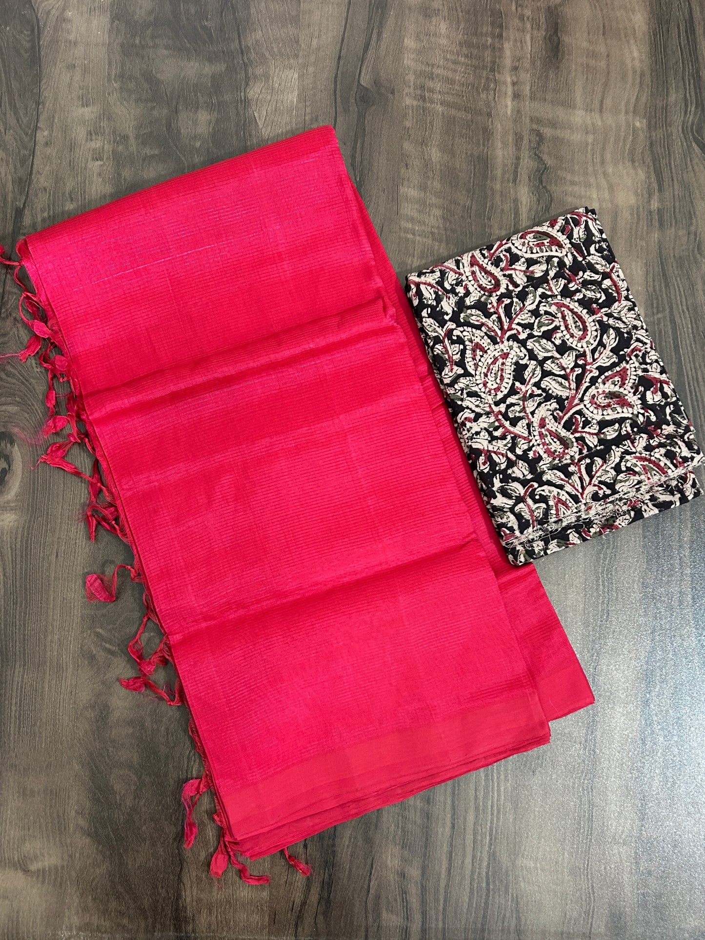 Mangalagiri Silk Cotton Hand Woven Saree with Extra Kalamkari Blouse