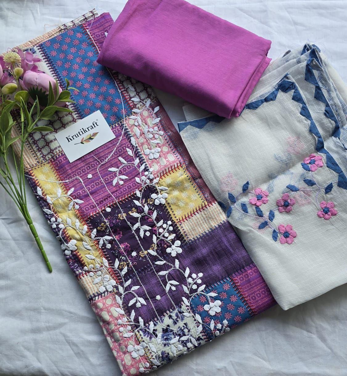 Pure Cotton Dress Material with phool Patti handwork