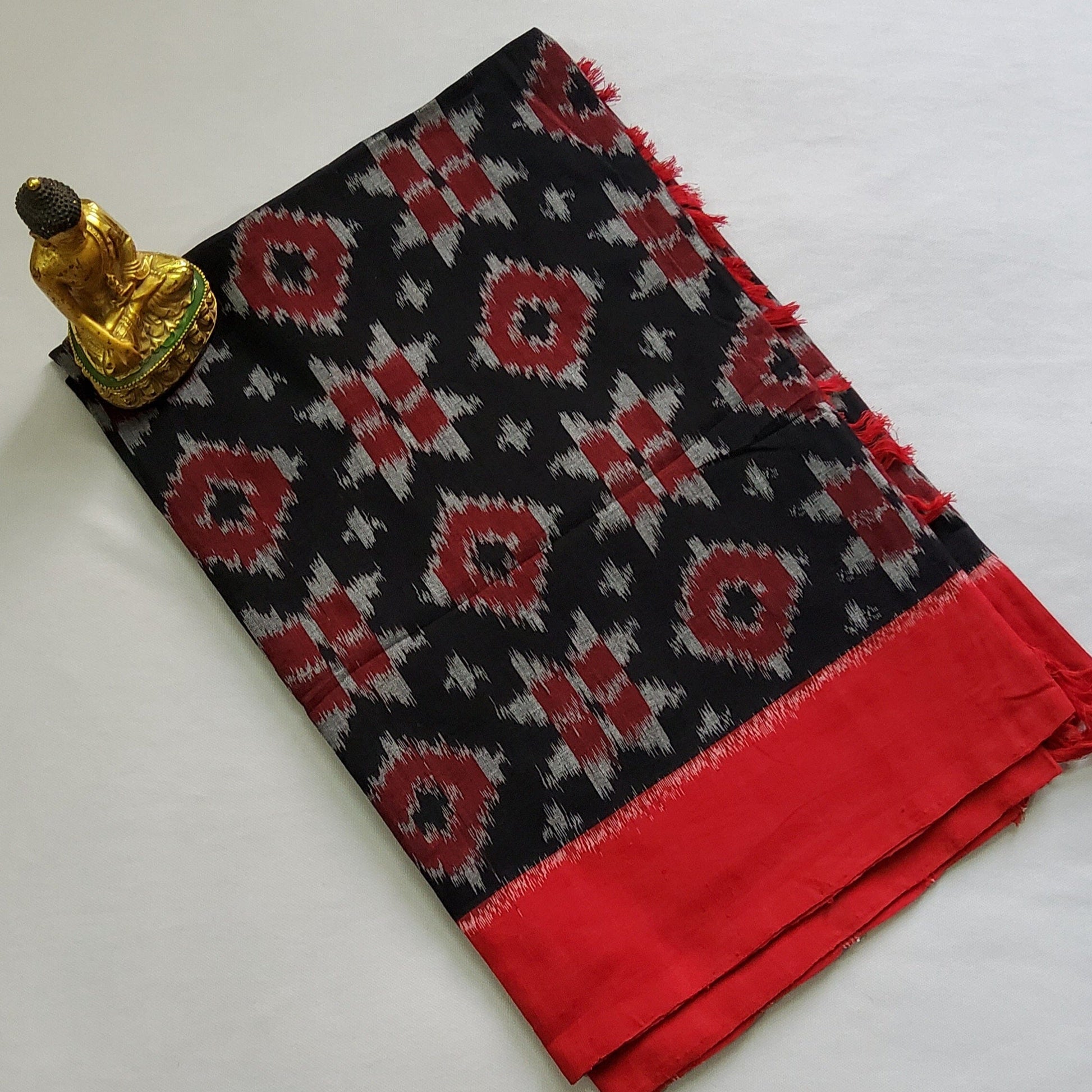 Red Black Telia Rumal Double Ikat Mercerised Cotton Dupatta